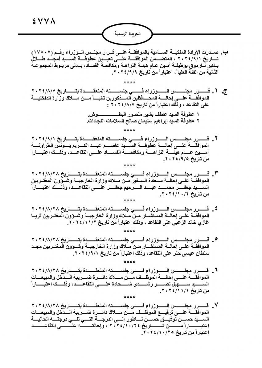 الحكومة تحيل موظفين حكوميين الى التقاعد (أسماء)