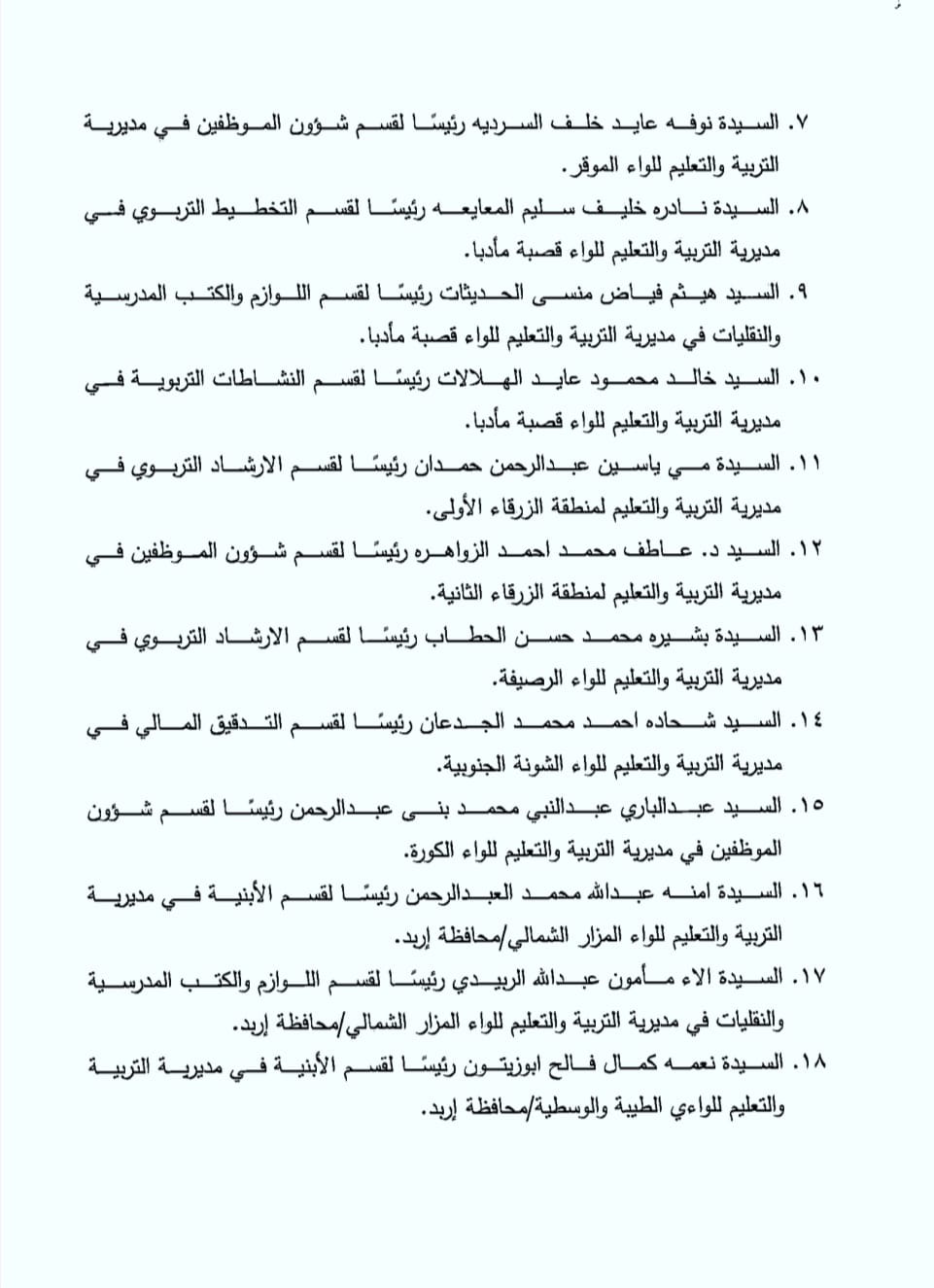 محافظة يجري تشكيلات في مديريات التربية - اسماء