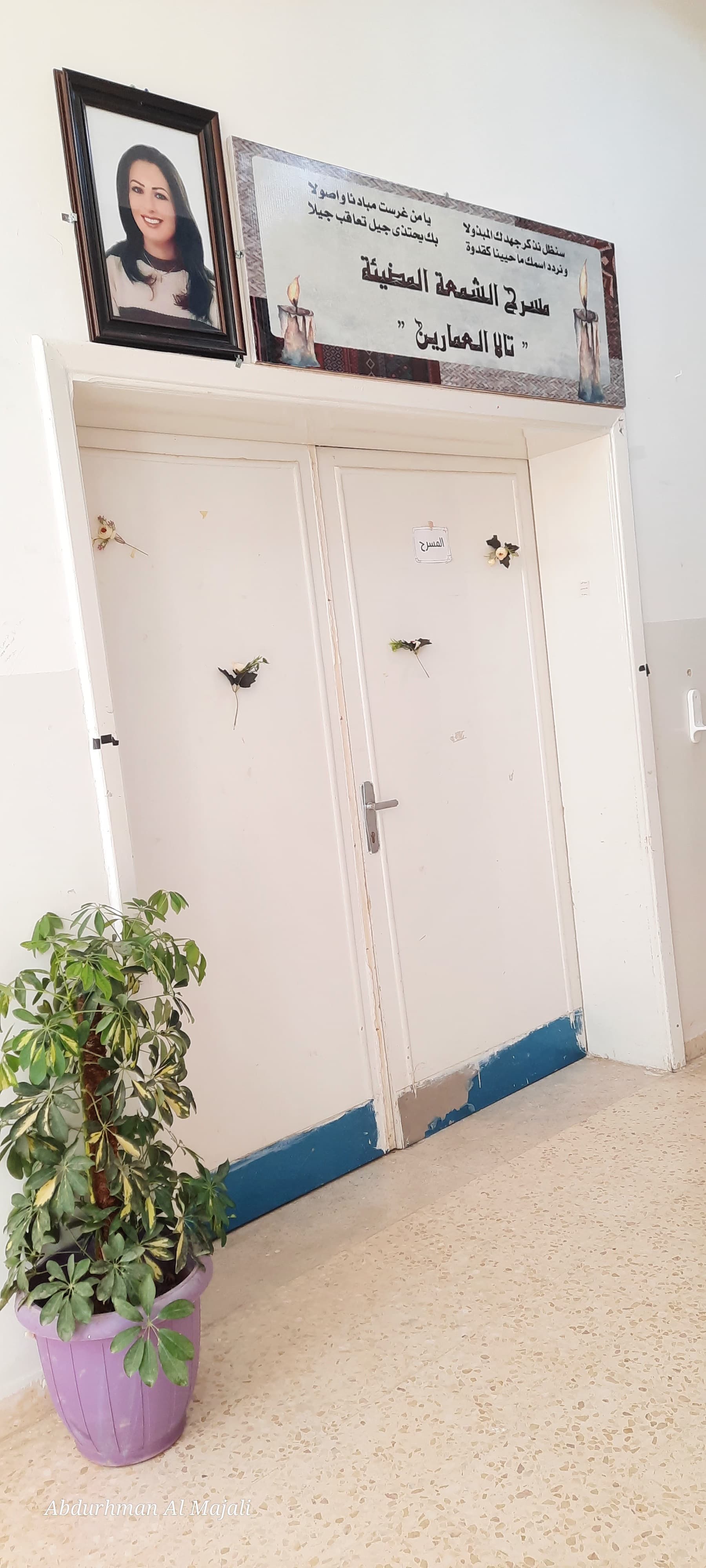 إيمانا ووفاء وتقديرا لمكانة المعلم قامت مدرسة الربة الثانوية للبنات بإطلاق اسم المعلمة الراحلة تالا العمارين على مسرح المدرسة حيث تم تدشين الاسم بحضور مدير التربية والتعليم لمنطقة القصر الدكتور علي الفقرا وزوج المعلمة الراحلة وذويها وعدد من زميلات المعلمة الراحلة من معلمات وطالبات