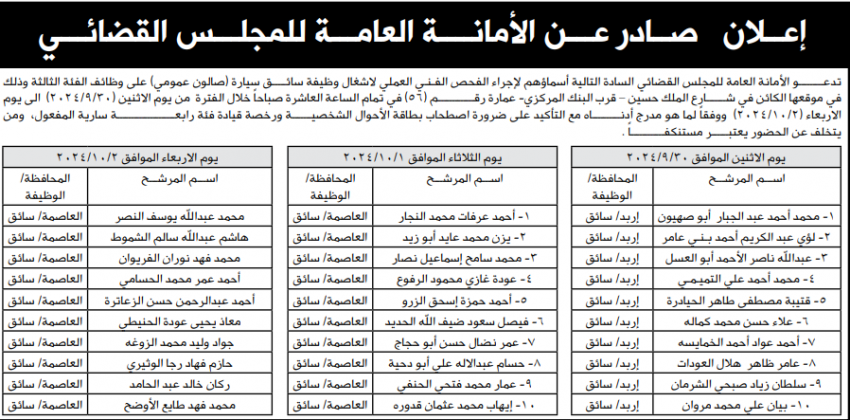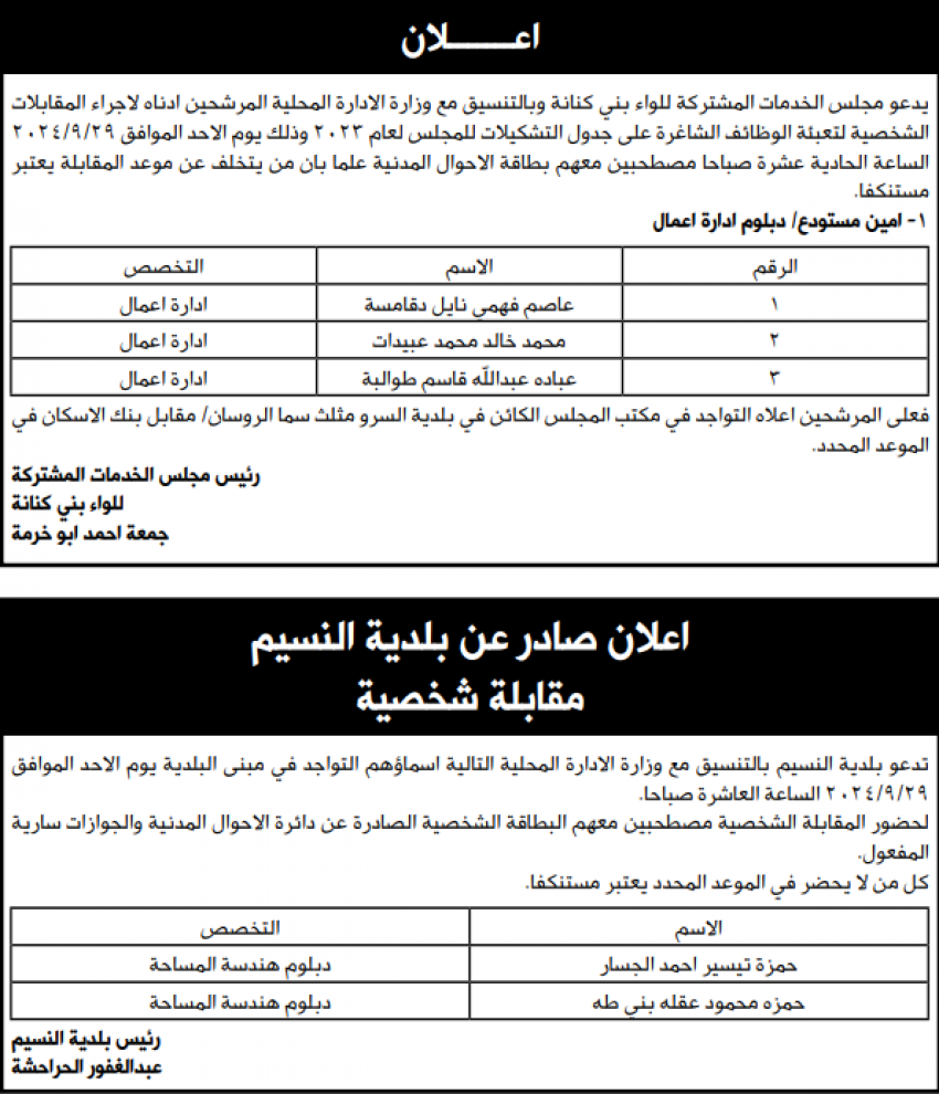 نُشر في الصحف اليومية الصادرة اليوم الأربعاء إعلانات عن توفر فرض عمل، كما دعت مؤسسات مرشحين للحضور لغاية المقابلة الشخصية استكمال إجراءات التعيين. وتاليا التفاصيل والأسماء: