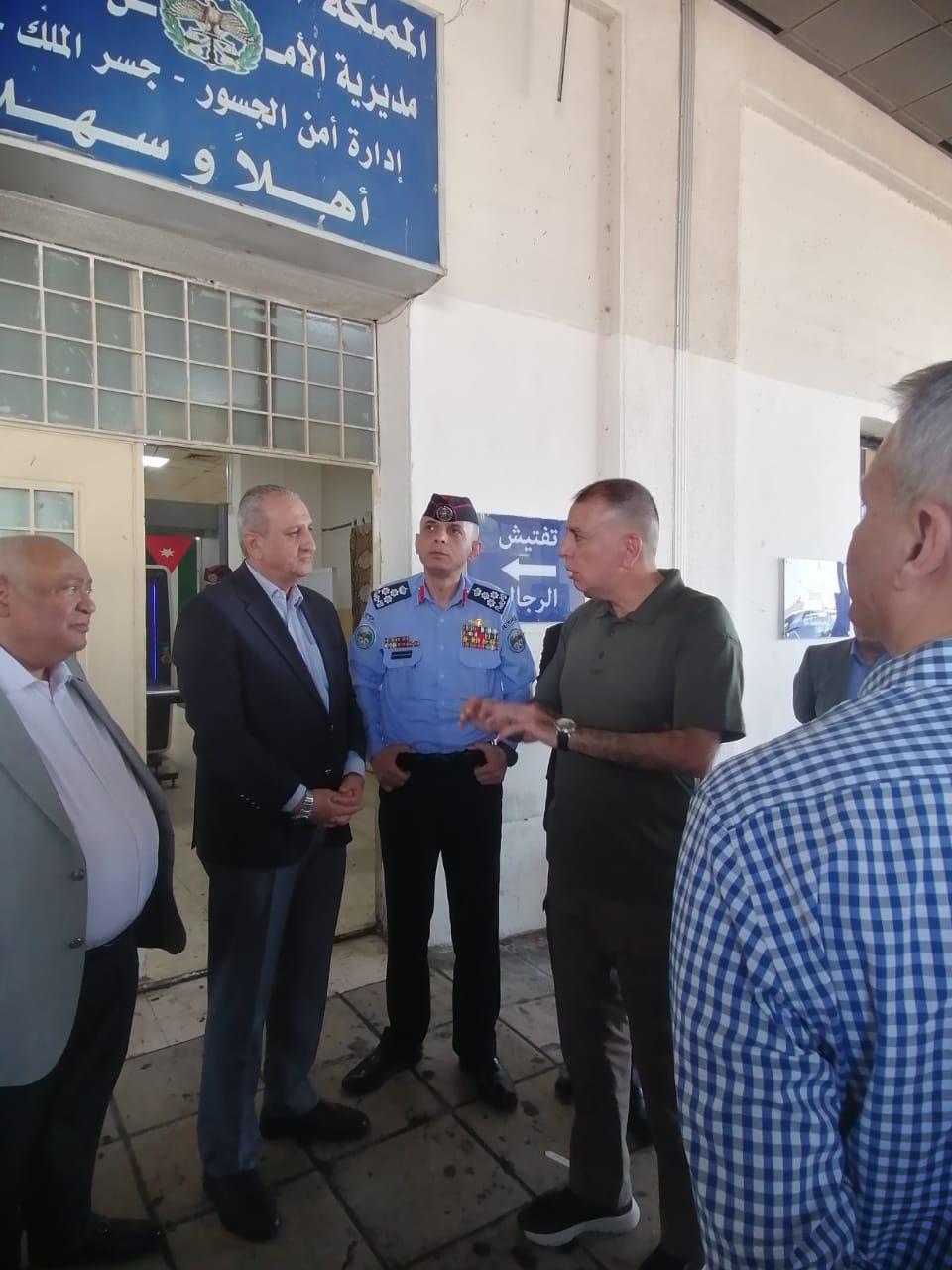 تفقد معالي مازن الفراية وزير الداخلية اليوم السبت جسر الملك حسين، واطلع على سير العمل اليومي هناك ، والتسهيلات والخدمات المقدمة للمسافرين من وإلى المملكة.وقال وزير الداخلية ان هذه الزيارة تأتي ترجمة للتوجيهات الملكية السامية الداعية دوما لتقديم كل ما من شأنه تسهيل حركة الاشقاء الفلسطينيين عبر مختلف المعابر الحدودية، وعلى رأسها جسر الملك حسين الذي يعتبر المتنفس الاول لهم وبوابتهم للمملكة وللعالم أجمع . بعدها قام وزير الداخلية بجولة عبر مرافق المعبر، واستمع لعدد من الملاحظات المتعلقة بطبيعة العمل وآليات تطويره والنهوض بمستوى الخدمات المقدمة للمسافرين مبديا توجيهاته لخدمة وراحة المسافرين عبر المعبر .