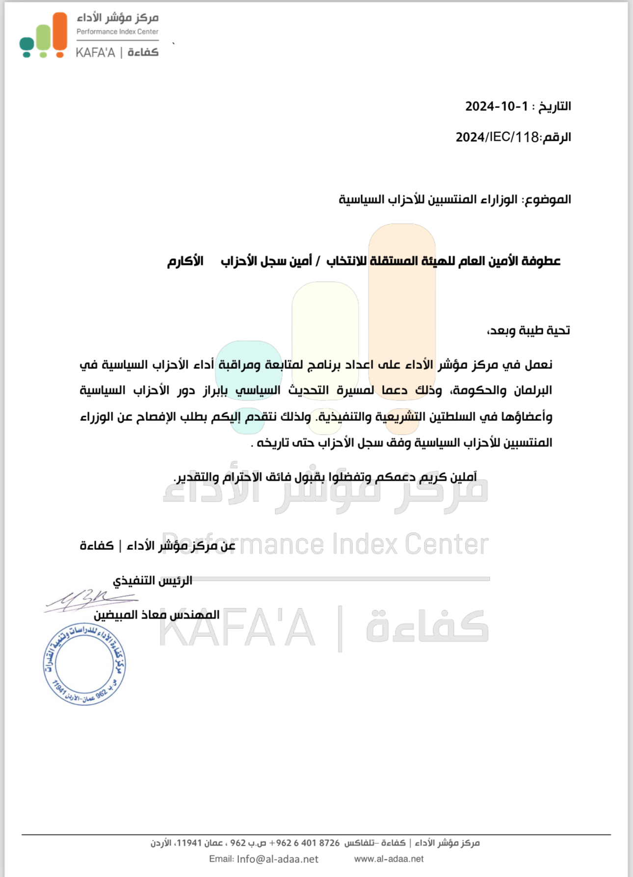 مؤشر الأداء يخاطب الهيئة المستقلة للإفصاح عن الوزراء الحزبيين ( وثيقة )