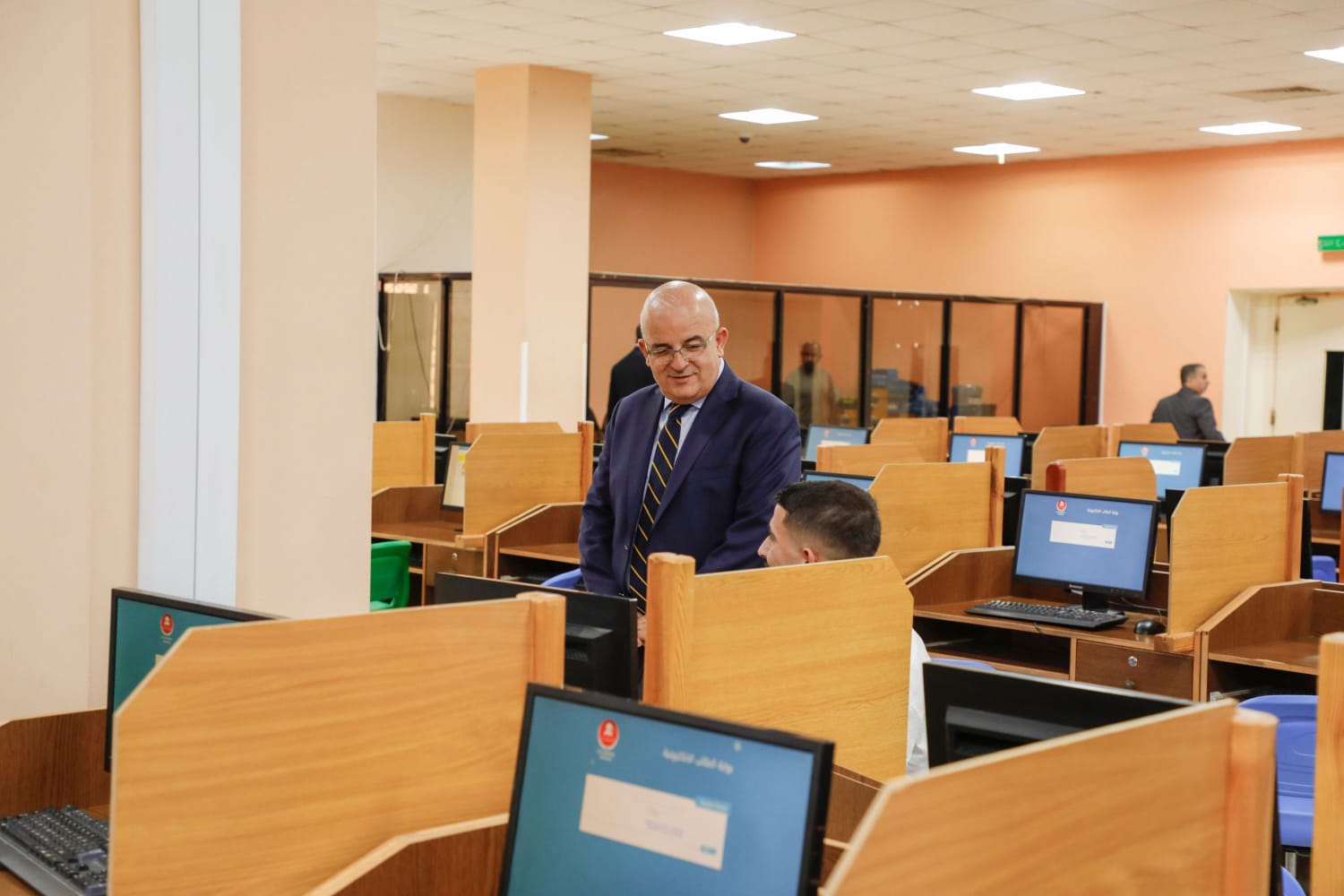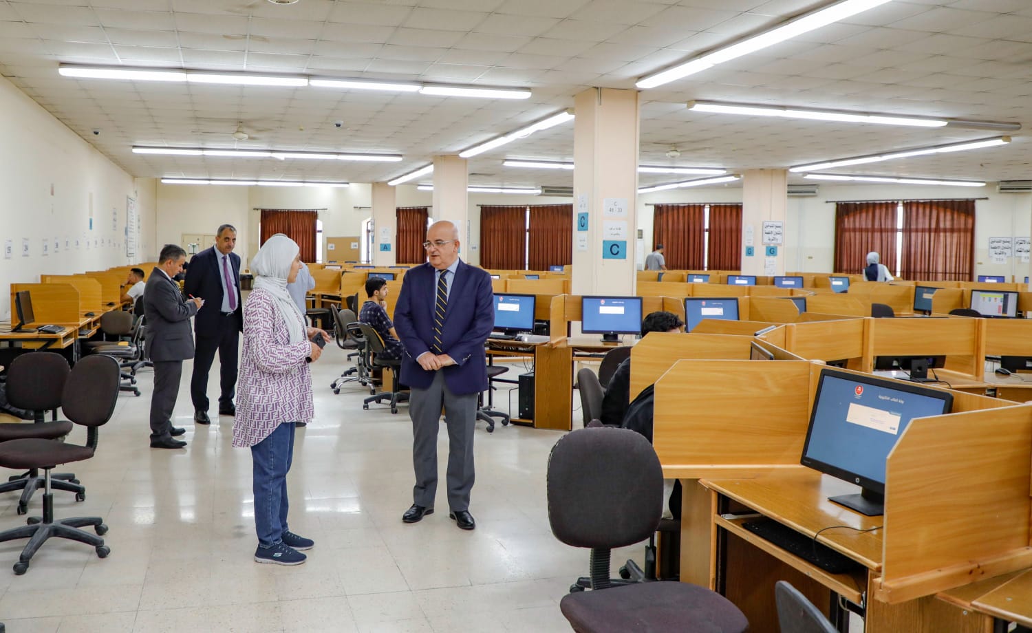 أكد رئيس الجامعة الهاشمية الأستاذ الدكتور خالد الحياري خلال لقائه عدد من طلبة الجامعة أثناء زيارته في مركز تكنولوجيا المعلومات، وعمادة شؤون الطلبة، ووحدة القبول والتسجيل، ومكتب المكرمة الملكية السامية لأبناء القوات المسلحة الأردنية، ومكتب خدمة العلم، ومكتب مكرمة للمعلمين، على أن الجامعة حرصت على توفير البيئة الجامعية المثلى لطلبتها لا سيما نوعية وجودة العملية التعليمية والتركيز على مفاهيم الريادة والابتكار والإبداع في مختلف برامجها، فضلا عن توفير ما يحتاجه الطلبة من الخدمات النوعية المختلفة.جاء ذلك خلال جولته التي قام بها بمناسبة بدء العام الجامعي الجديد الذي صادف اليوم الأحد الموافق 6-10-2024، لتفقد إجراءات قبول الطلبة الجدد والاطلاع على الإجراءات المتبعة لتسجيل الطلبة القدامى والجدد، وحث الدكتور الحياريا على ضرورة توفير التسهيلات اللازمة للطلبة، مؤكدا على تطلع الجامعة إلى الاستمرار في الريادة والتميز في الخطط والبرامج والمبادرات التي تلبي احتياجات الطلبة وتطلعاتهم المستقبلية.وتفقد رئيس الجامعة، مختبرات الامتحانات الإلكترونية وإجراءات عقد امتحانات المستوى للطلبة المستجدين، مؤكداً حرص الجامعة على ضمان سير الامتحانات بالطريقة الملاءمة وفق جداول زمنية محددة للطلبة. واطمأن خلال جولته على الاجراءات التي تم اتخاذها من أجل التأكد من تهيئة الظروف الملائمة بما يتيح للطلبة انهاء امتحاناتهم بسهولة ودون عقبات، وعلى الالتزام بضوابط أداء الامتحانات واتخاذ كافة الإجراءات التي توفر سبل الراحة والأمان والدعم لهم. وفي عمادة شؤون الطلبة، التقى رئيس الجامعة بالطلبة أولي الضرر السمعي، مرحبا بهم في الجامعة ومباركا قبولهم في الجامعة، مؤكدا حرص الجامعة على توفير كافة الخدمات التي يحتاجونها خصوصا خدمة توفير مترجم لغة إشارة، كما التقى رئيس الجامعة، فرق الإرشاد الطلابي التي تشرف عليها عمادة شؤون الطلبة مشيدًا بما يقومون به من جهود لتوفير خدمات الإرشاد للطلبة الجدد.وتفقد الدكتور الحياري، في وحدة القبول والتسجيل، إجراءات قبول الطلبة وتسجيلهم، وأثنى على الجهود المبذولة من قبل كوادر وحدة القبول والتسجيل في استكمال إجراءات القبول والتسجيل داعيًا إلى الاستمرار في تطوير الخدمات الإلكترونية التي تعالج مختلف القضايا الطلابية.كما التقى رئيس الجامعة، بعدد من الطلبة الوافدين مؤكدا حرص إدارة الجامعة على تسهيل إجراءات قبولهم وتسجيلهم، ومتابعة مسيرتهم في الجامعة من خلال شعبة شؤون الطلبة الوافدين في عمادة شؤون الطلبة، والحرص على توفير تجربة دراسية مميزة في الجامعة وفي الأردن الغني بتاريخه وثقافته وتنوعه. وقدم الشكر والتقدير للجهات المستضافة في الجامعة من مكرمة الجيش ومكتب خدمة العلم ومكتب مكرمة المعلمين على الجهود التي يبذلونها والخدمات التي يقدمونها وتعاونهم الكبير مع الجامعة. كما أثنى على الجهود المبذولة من كافة الجهات في الجامعة التي تعمل لرفعة الجامعة وتقدمها وتوفر مختلف الخدمات والتسهيلات اللازمة للطلبة.