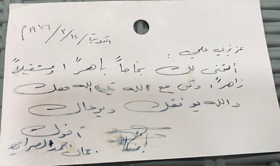 من الذاكرة : جمال الصرايرة لعلي الجعافرة قبل ٤٤ عام : كن مع الله يكن الله معك