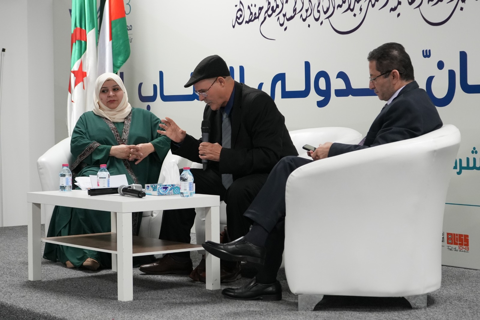 وفي ندوة" الكتابة والنشر بين مغرب الوطن العربي ومشرقه"، وتحدث الكاتبة الروائية سارة النمس من الجزائر عن ما وصفته بالأسئلة الجارحة التي توجه للجزائري، وهي من نوع: هل تتحدثون باللغة العربية في بيوتكم، هل تتحدثون الفرنسية في بيوتكم ؟، وأوضحت الروائية النمس، أن الجزائريون يتحدث في بيوتهم اللغة الجزائرية التي هي مزيج من اللغة العربية ومزيج من لغات أخرى.