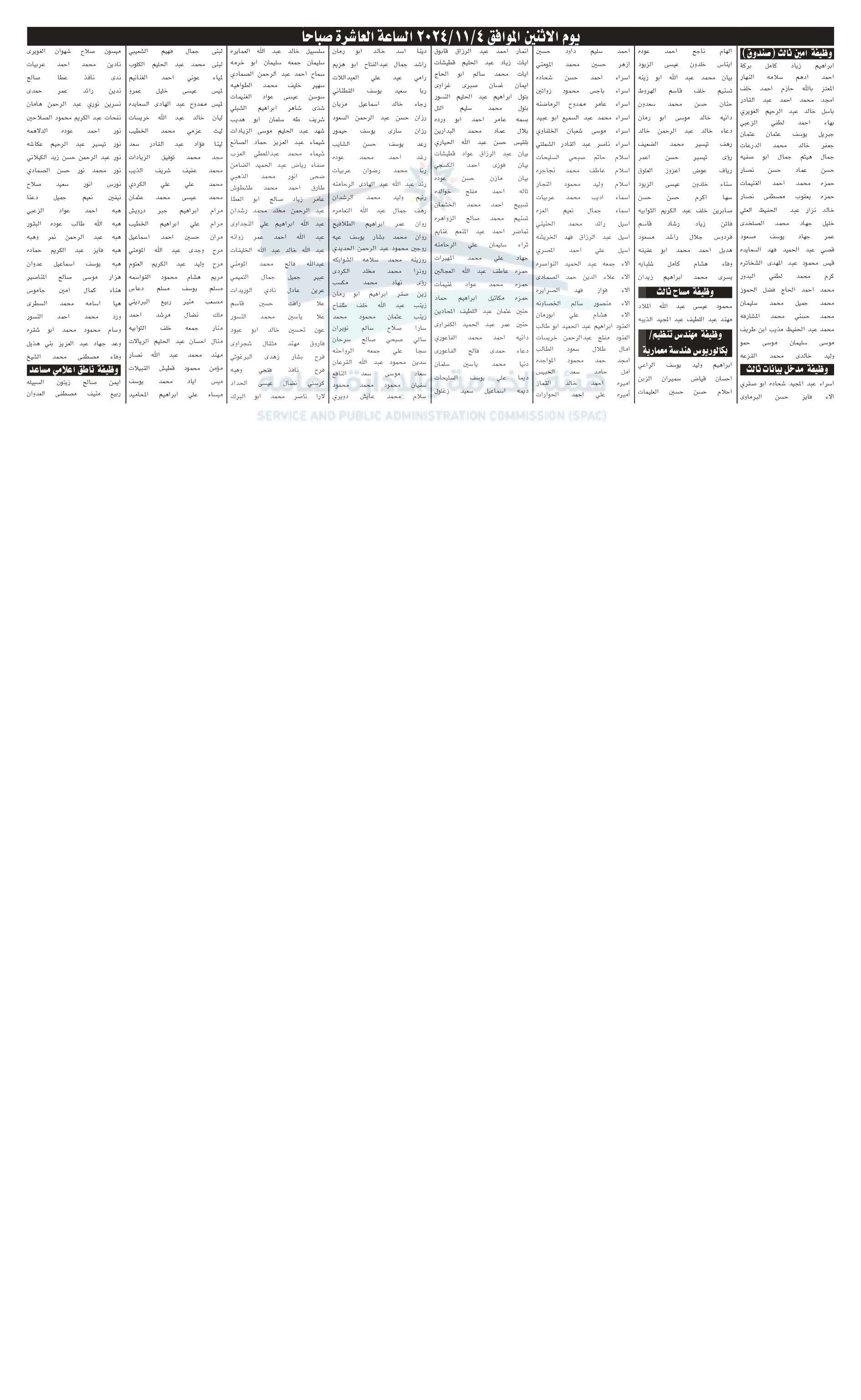 دعت المؤسسة العامة للإسكان والتطوير الحضري بالتنسيق مع هيئة الخدمة والإدارة العامة، التالية أسماؤهم لحضور الامتحان التنافسي. تاليا التفاصيل والأسماء: