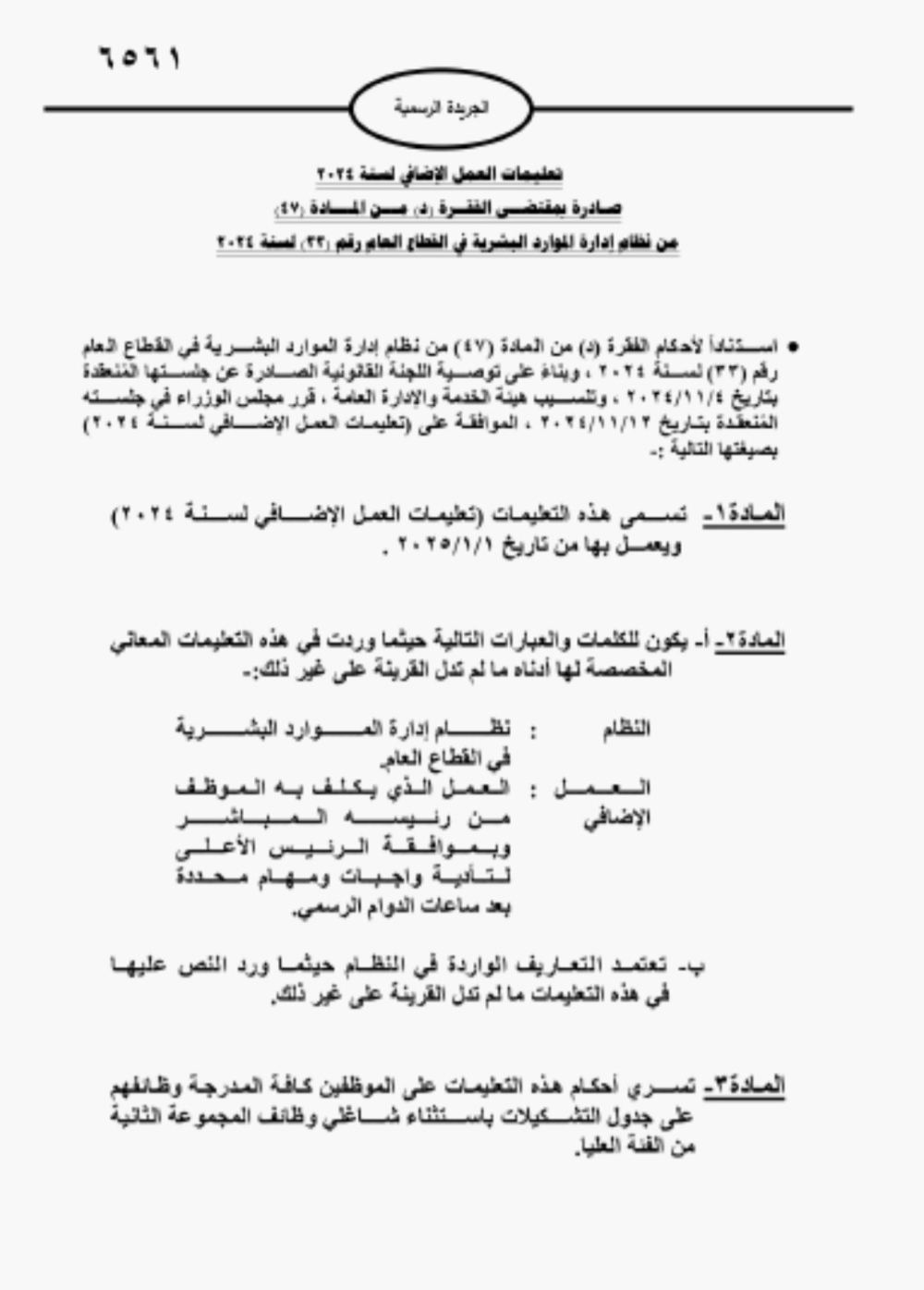 اصدرت الحكومة اليوم الاحد تعليمات العمل الإضافي لسنة 2024، وذلك بعد نشره في الجريدة الرسمية.