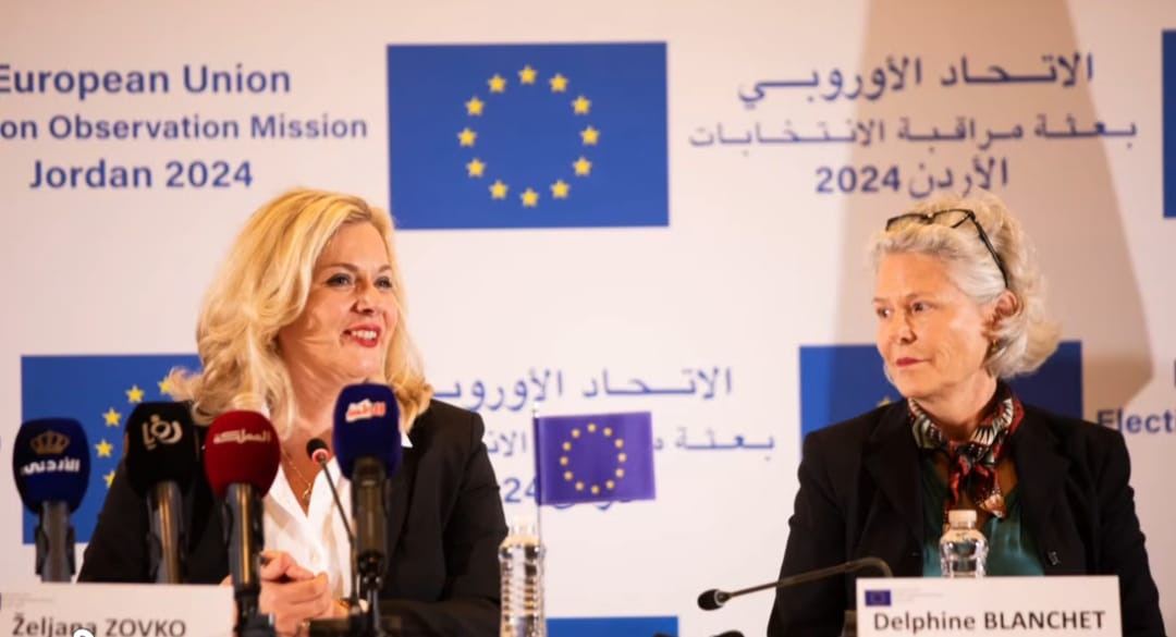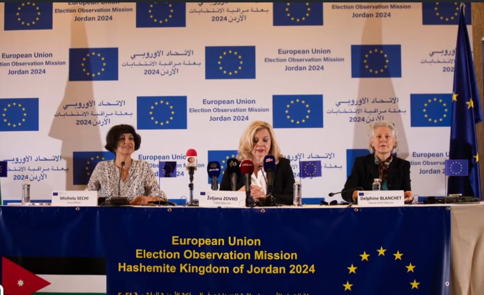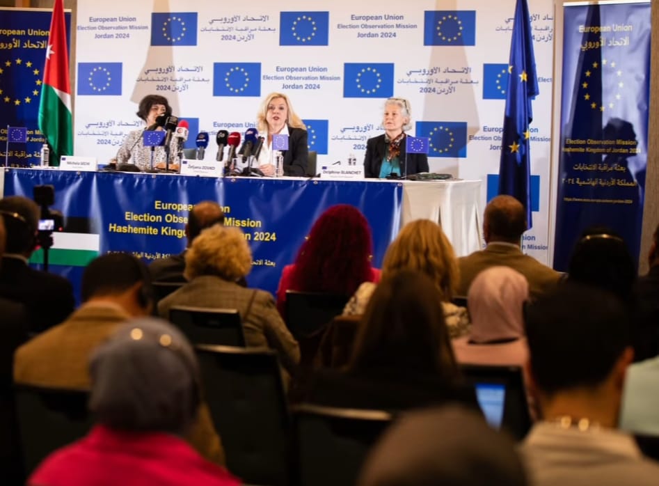 عقدت بعثة الإتحاد الأوروبي لمراقبة الإنتخابات النيابية في الأردن مؤتمراً صحفياً اليوم في العاصمة عمّان بفندق الشيراتون بهدف اعلان تقريرها النهائي المتضمن 18 توصية تهدف إلى تعزيز الإصلاحات الإنتخابية التي جرت في العاشر من شهر لسنة 2024 ، مُقدمةً 18 توصية تهدف
