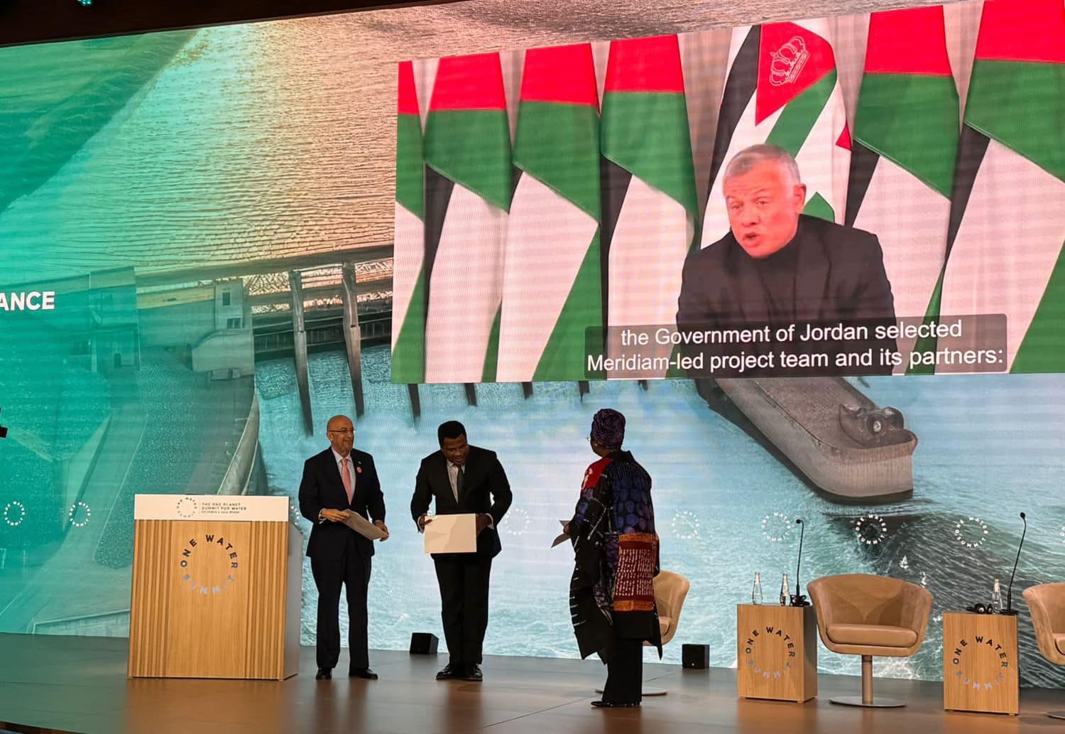 واستعرض وزير المياه والري الجهود المبذولة من قبل الحكومة الاردنية للحد من تحديات نقص المياه في الاردن وتنفيذ مشاريع مائية استراتيجية وطنية مهمة مثل مشروع الناقل الوطني الذي سيعمل على الطاقة البديلة لمواجهة اثار التغير المناخي مؤكدا ان الأردن ماض في تنفيذه لتامين 300 مليون متر مكعب من المياه المحلاة من البحر الأحمر في العقبة ونقلها الى معظم المدن الأردنية .