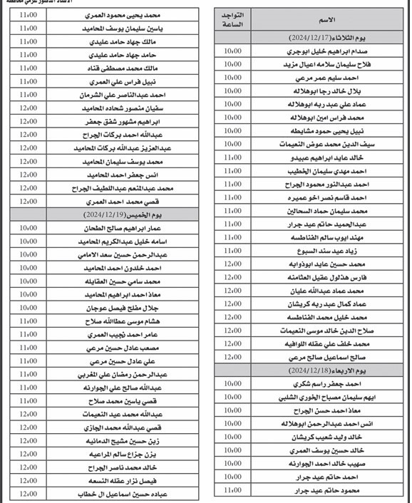 دعت وزارة التربية والتعليم الأشخاص التالية اسماؤهم للمقابلة الشخصية لوظائف حرفية .وحددث الشروط والمواعيد والاسماء وفقا للاعلان المرفق ادناه :