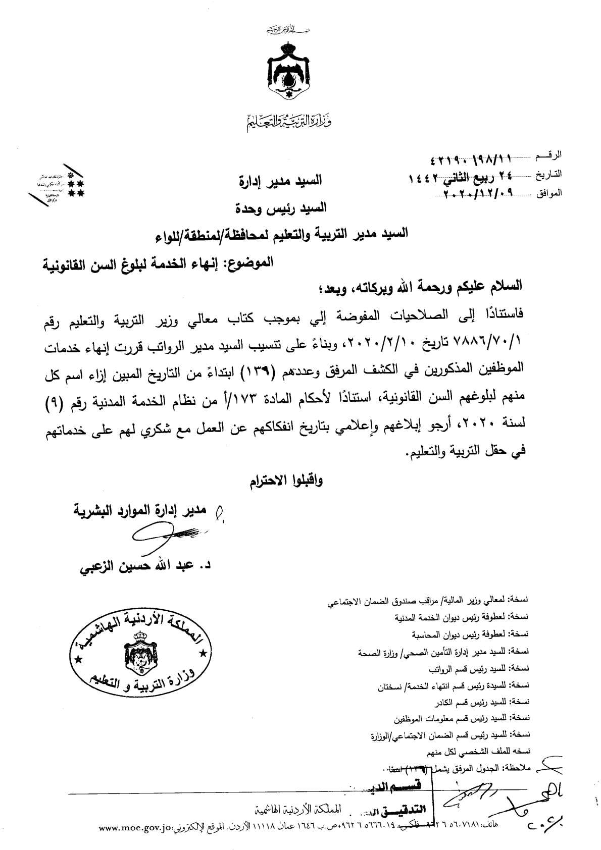 اخبار الاردن : إحالات على التقاعد بوزارة التربية ( أسماء)