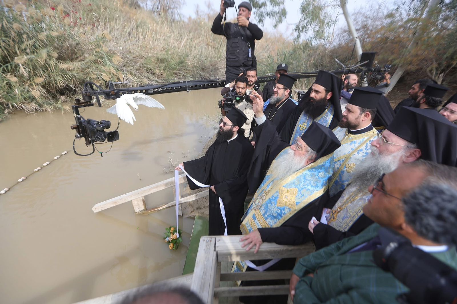 وفي الختام أُطلقَ الحمامُ الأبيضُ رمزَاً للرّوحِ القدسِ الذي رفَّ فوق مياه نهر الأردن عندَ اعتمادِ السّيّد المسيح على يد القديس النبي السابق يوحنّا المعمدان. بعدها توجّه سيادتُه مع الآباءِ الكهنة إلى نهر الأردنِّ لتغطيسِ الصّليب حسب العادة الكنسيّة.