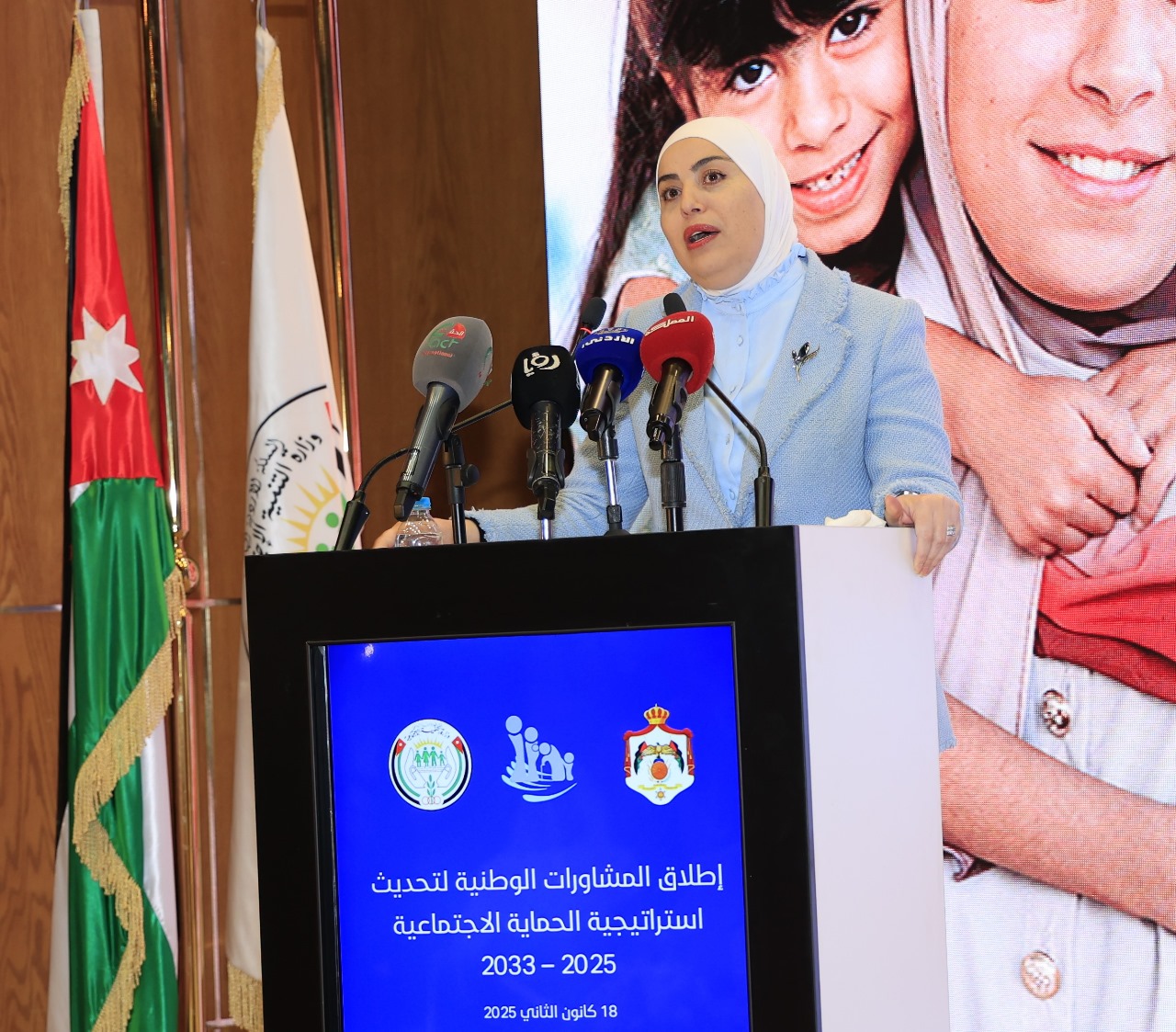 وأشارت إلى أن الحكومة ملتزمة باطلاق الاستراتيجية المحدثة للأعوام 2025-2033 خلال الربع الثاني من هذا العام، وهو ما أعلن عنه رئيس الوزراء في البيان الوزاري الذي تقدم به أمام مجلس النواب بهدف توسيع نطاقها، وفق أفضل الممارسات والمعايير، وتعزيز برامج التمكين الاقتصادي، وزيادة كفاءة المساعدات الاجتماعية، كما تتضمن الاستراتيجية التنسيق بين الجهات الحكومية والتطوعية والقطاع الخاص المعني ومؤسسات المجتمع المدني، وتوسيع نطاق الشمول والاستهداف، وتحسين جودة الخدمات.كما تحدثت بني مصطفى عن أن إطلاق المشاورات يأتي استكمالا للجهود السابقة، والتي ركزت على ثلاثة محاور رئيسية "تمكين، وكرامة" وفرصة" بالإضافة لمحور رابع تم إضافته وهو "الاستجابة للأزمات والصدمات، وذلك بالمشاركة والتعاون مع وزارات ومؤسسات حكومية وقطاع خاص ومؤسسات مجتمع مدني وشركاء دوليين وخبراء في مجال الحماية الاجتماعية." وأوضحت أن الاستراتيجية الوطنية المحدثة تهدف الى التكامل مع مسارات التحديث الوطنية الثلاثة (الاقتصادي، والسياسي والإداري)، وتعزيز الشمولية والتكاملية ورفع كفاءة نظام الحماية الاجتماعية، وبناء أنظمة حماية اجتماعية استباقية مرنة قادرة على الاستجابة للصدمات (محور صمود)، وتطوير مسارات تمكينية تقلل من نسب المعتمدين على المساعدات الاجتماعية، وادخال التكنولوجيا والرقمنة وادوات الذكاء الاصطناعي في بنية مبادرات وبرامج الحماية الاجتماعية، وتعزيز الاستدامة المالية والمؤسسية من خلال اشراك القطاع الخاص ومؤسسات المجتمع المدني بشكل ممنهج ومنسق، وزيادة الوعي والمشاركة المجتمعية في مبادرات وبرامج الاستراتيجية من خلال خطة اتصال وتواصل إبداعية، وتحسين قابلية التنفيذ وتعزيز المساءلة من خلال خطة عمل وإطار زمني يرافقها ميزانية وإطار واضح للمتابعة والتقييم.