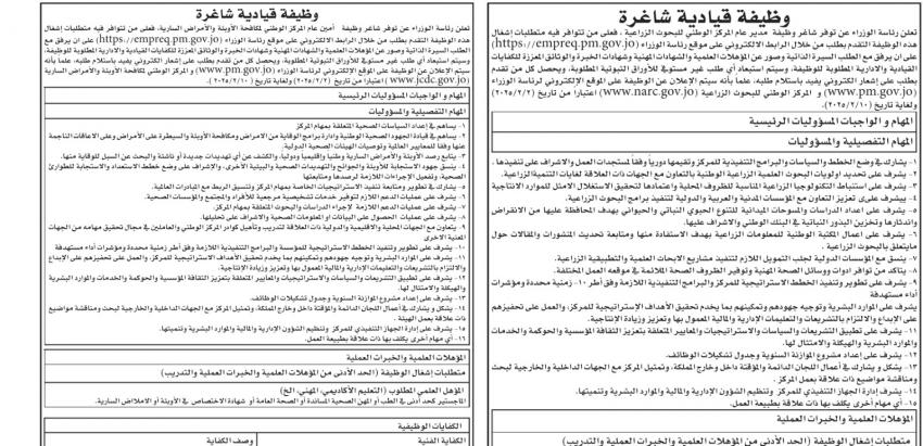 أعلنت رئاسة الوزراء، اليوم الأحد ، عن توفر وظيفتين قيادتين شاغرتين لمنصب مدير عام المركز الوطني للبحوث الزراعية وأمين عام المركز الوطني لمكافحة الأوبئة والأمراض السارية .ونشرت الرئاسة، الشروط الواجب توفرها في المتقدمين للوظيفة، ومتطلباتها.