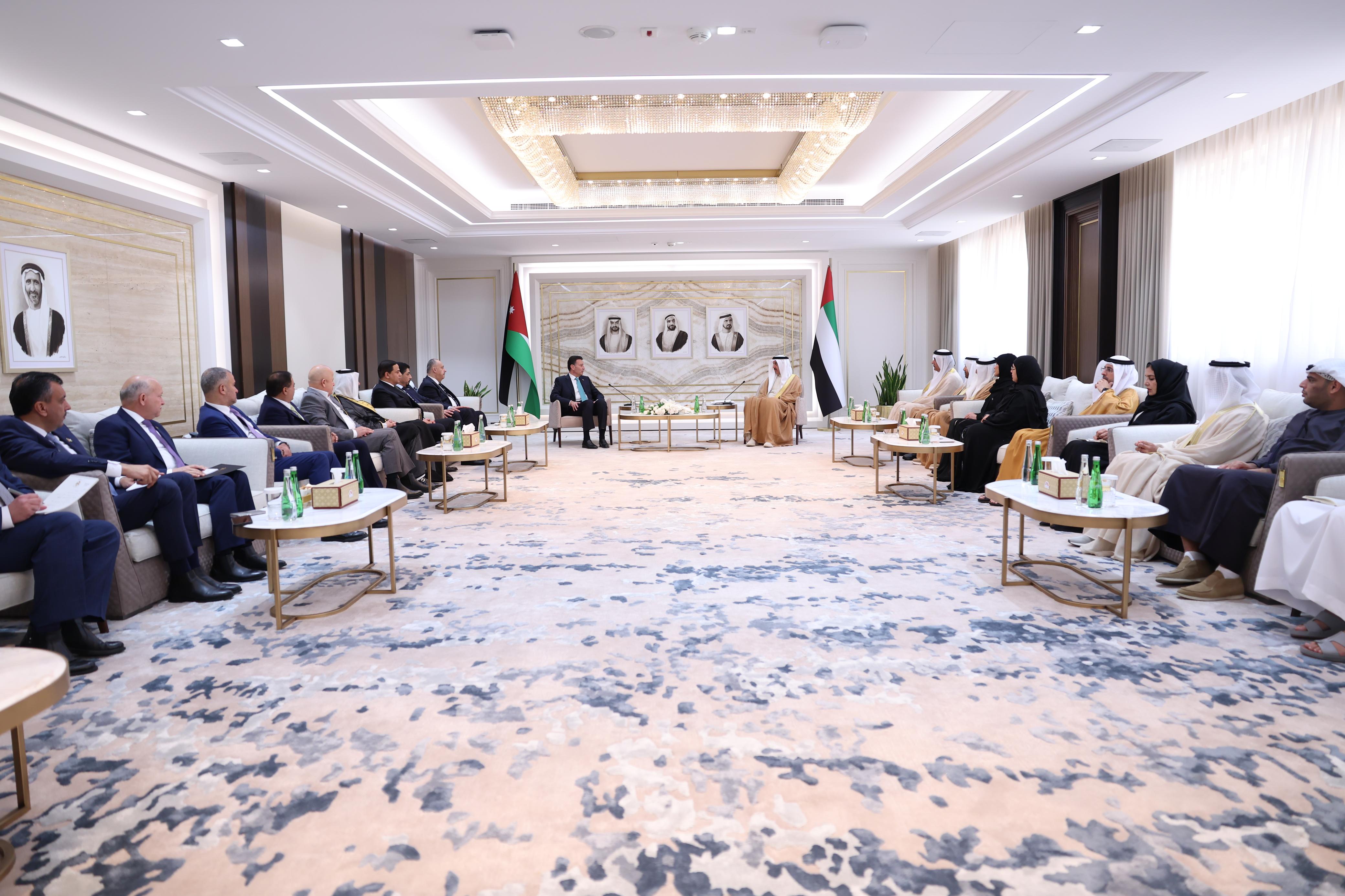 وقدم الوفد المرافق الذي ضم رئيس لجنة الأخوة الأردنية الاماراتية النائب احمد عشا ورئيس كتلة عزم النيابية النائب احمد ابوهنية ورئيس لجنة النقل والخدمات العامة النائب ايمن البدادوة و النائب ايمن العوايشة والنائب بدر الحراحشة والنائب اية الله فريحات مداخلات أكدت عمق العلاقات التاريخية بين البلدين وضرورة زيادة التبادل الإقتصادي والاستثماري بين البلدين من خلال تفعيل اتفاقيات التعاون التي ستزيد من حجم التبادل التجاري بما يخدم مصلحة الشعبين الشقيقين.