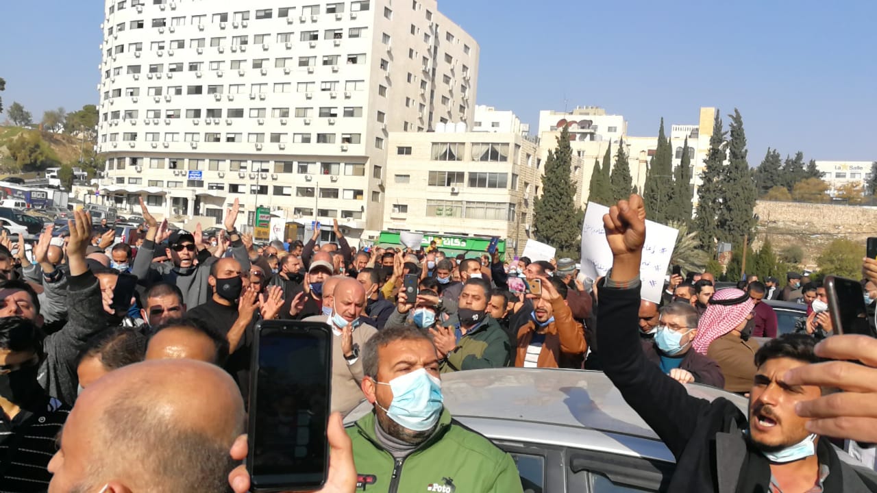وتحوّل التجمّع إلى فعالية غاضبة ومسيرة انطلقت من البوابة الخارجية لمجلس الأعيان إلى الشارع الواصل بين مجلس النواب ومبنى أمانة عمان.
