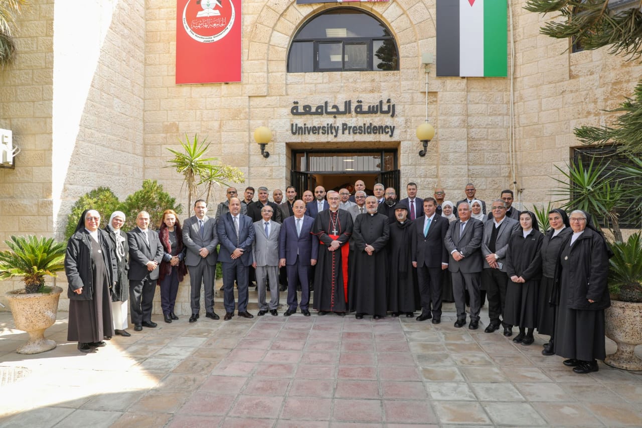 من جانبه رحب الدكتور عيسى حداد عضو مجلس أمناء الجامعة بنيافة الكاردينال بييرباتيستا بيتسابالا باسم مجلس الأمناء وثمنّ حرص قداسة البابا على احقية أهل فلسطين بالعيش الكريم على أرضهم بحرية وسلام، مؤكدًا الوقوف خلف جلالة الملك عبدالله الثاني المعظم في رفض التهجير، إضافة إلى أهمية الوصاية الهاشمية على المقدسات الإسلامية والمسيحية في القدس.
