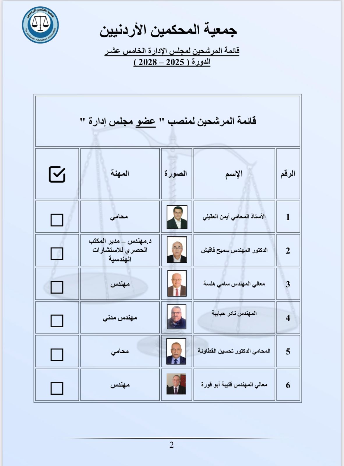 جمعية المحكمين الأردنيين تنتخب مجلس ادارتها الخامس عشر للدورة 2025/2028