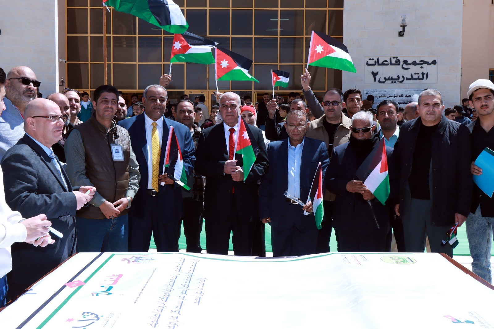 تحت رعاية رئيس جامعة الحسين بن طلال، الأستاذ الدكتور عاطف الخرابشة، نظمت عمادة شؤون الطلبة بالتعاون مع مديرية شباب معان وهيئة شباب كلنا الأردن / معان، احتفالاً بمناسبة يوم العلم الأردني، الذي يصادف السادس عشر من نيسان من كل عام، وذلك ضمن فعاليات حملة "علمنا عالٍ".