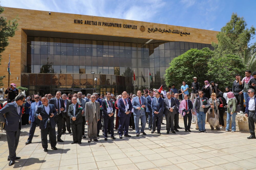 قد شارك في المسيرة الاحتفالية فرسان وموسيقات الأمن العام، الذين أضفوا بأهازيجهم الوطنية طابعًا مميزًا على الفعاليات، وترددت الهتافات التي تُجسد روح الفخر والانتماء، في تعبير صادق عن حب الوطن وقائده، كما شهدت الجامعة تزيين مداخلها وأروقتها بالأعلام الأردنية، وسط أجواء من الحماس والبهجة التي غمرت الجميع، ليؤكدوا أن الأردن سيظل مرفوع الرأس، محميًا بسواعد أبنائه الذين لا يدخرون جهدًا في سبيل إعلاء شأنه.