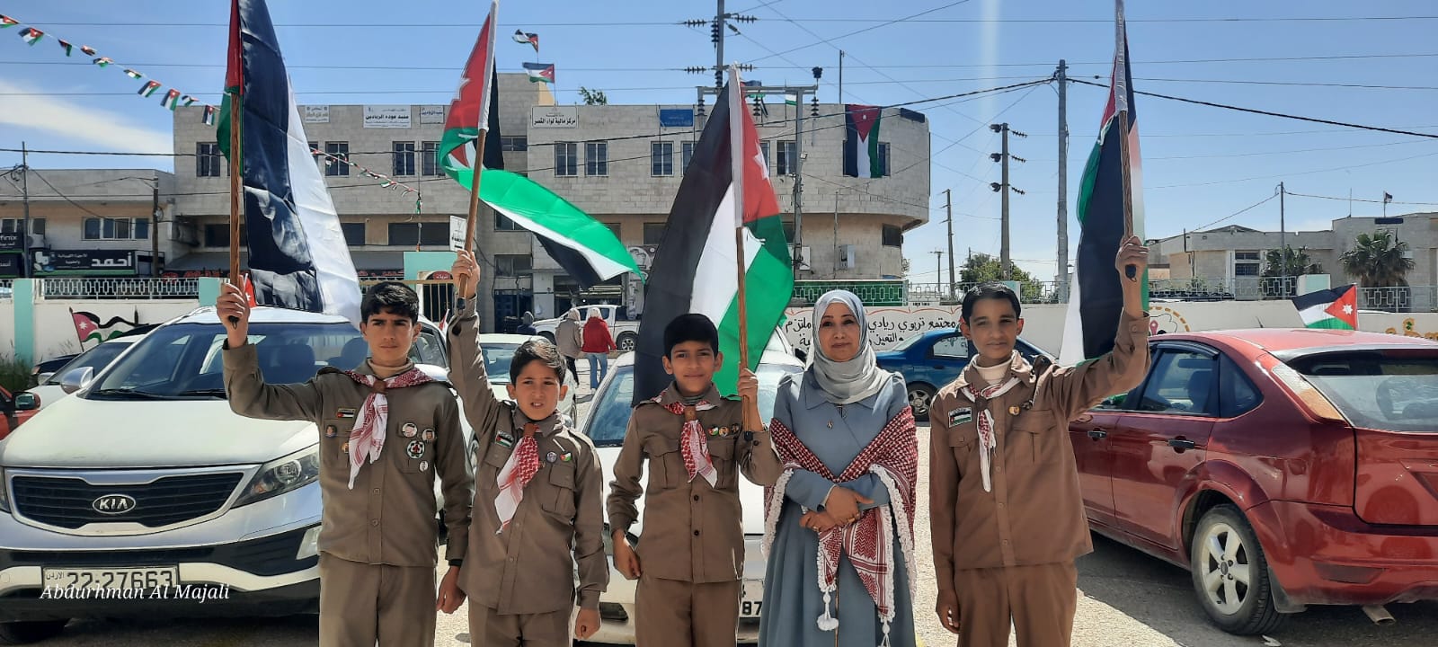 وأدى كشافة والمرشدات اهازيج وطنية بمناسبة يوم العلم حيث تزينت مباني وساحة المديرية ومدارس تربية القصر، بهذه المناسبة بالأعلام والرايات زهوا وفخارًا، في أجواء احتفالية بهذا اليوم الذي يحمل معاني الاعتزاز بالوطن وقائد الوطن.