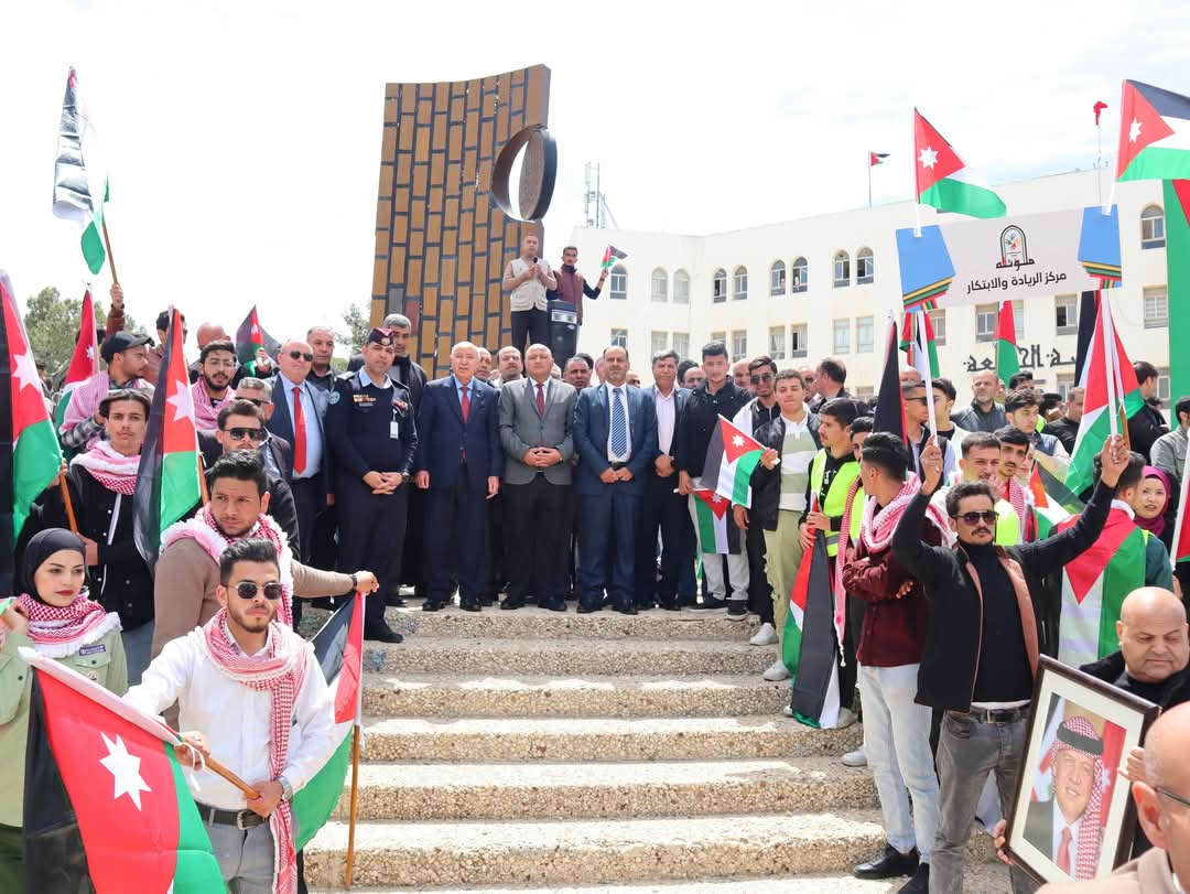وقد شهدت ساحات الجامعة مراسم رفع العَلَم الأردني عاليًا، على أنغام السلام الملكي، في مشهد جسّد أسمى معاني الانتماء والولاء للوطن وقيادته الهاشمية. أعقب ذلك مسيرة وطنية شارك فيها حشد كبير من الطلبة، حاملين الأعلام الأردنية وصور جلالة الملك عبدالله الثاني ابن الحسين، وسمو ولي العهد الأمير الحسين بن عبدالله الثاني، في تعبير صادق عن العهد والوفاء لمسيرة العزة والنهضة التي يقودها جلالة الملك.