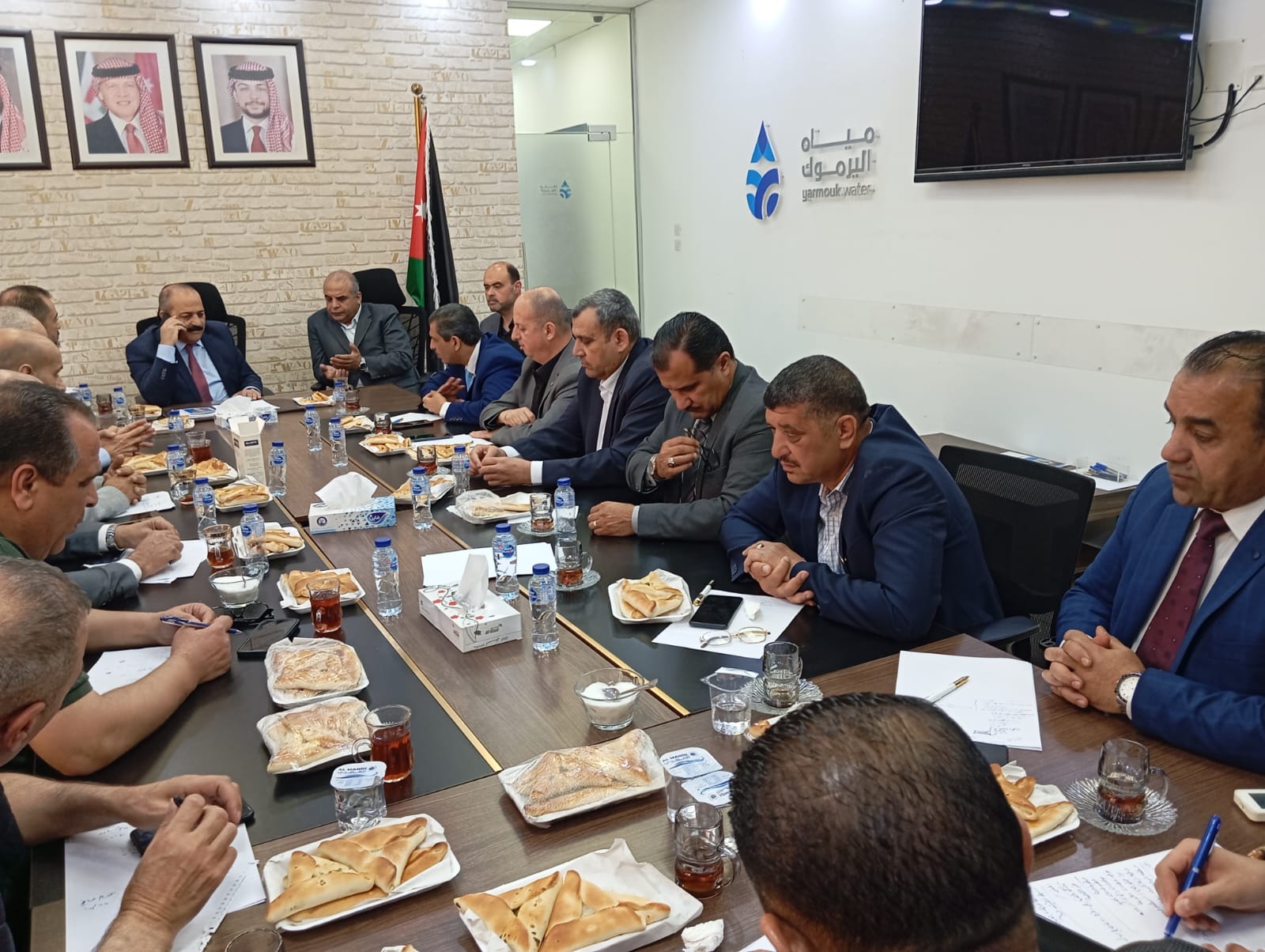 واستمع المحافظ والحضور الى مدير عام شركة مياه اليرموك المهندس محمد العمايرة الى الاجراءات و الخطوات الملموسة المبذولة من قبل مياه اليرموك في جميع مناطق محافظة اربد و محافظات الشمال بهدف تحسين الاداء وبرامج التوزيع وادوار المناطق مبينا ان الوزارة /سلطة المياه تسعى لتمكين شركة مياه اليرموك من تجاوز كافة التحديات التي تواجهها الشركة في محافظات الشمال بسبب ارتفاع الطلب واللجوء السوري كاشفا عن زيادة قدرة بعض المصادر المائية المخصصة للشمال .