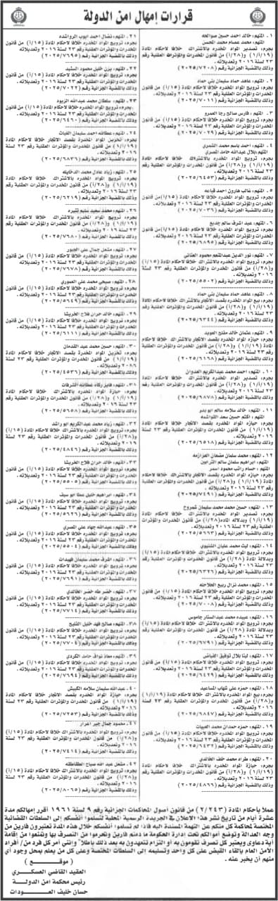 وأضاف القاضي العودات "انني آمر كل فرد من أفراد الامن العام بالقاء القبض على كل واحد وتسليمه إلى السلطات المختصة، وعلى كل من يعلم بمحل وجود اي منهم ان يخبر عنه".
