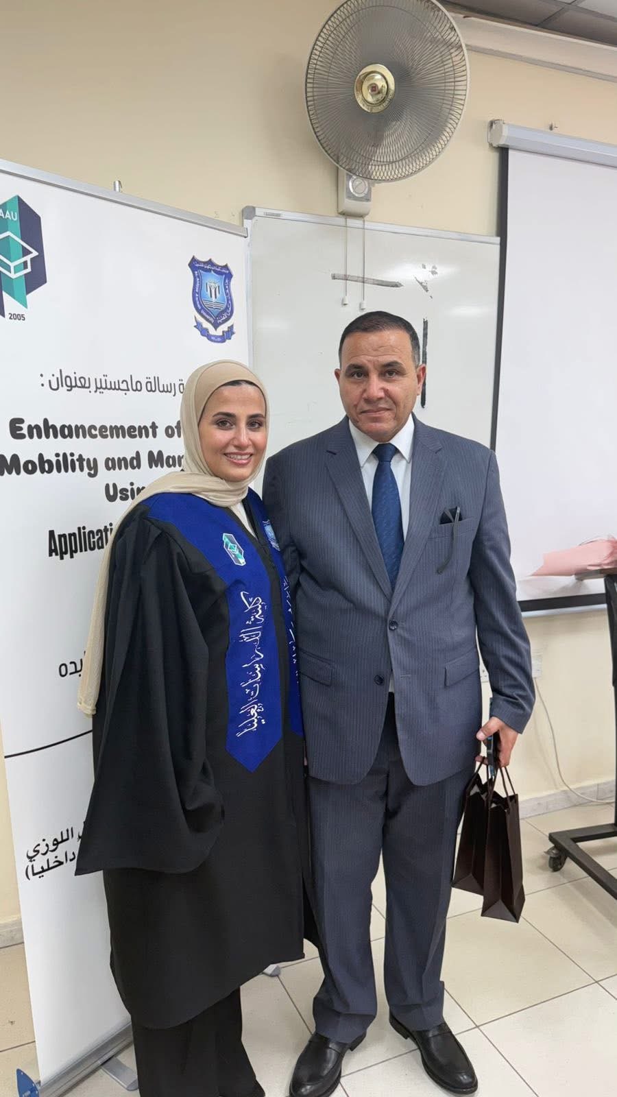 بكل مشاعر الفخر والاعتزاز، والامتنان لله على توفيقه، يتقدم الدكتور فراس أبو قاعود وعائلته الكريمة بأحر التهاني وأصدق التبريكات، ممزوجة بالحب والتقدير، إلى ابنتيهم الغاليتين: المهندسة بتول فراس أبو قاعود بمناسبة حصولها على درجة الماجستير في هندسة النقل الذكي. و الدكتورة سندس فراس أبو قاعود بمناسبة حصولها على درجة البكالوريوس في الطب البشري. قال تعالى: ﴿يَرْفَعِ اللَّهُ الَّذِينَ آمَنُوا مِنْكُمْ وَالَّذِينَ أُوتُوا الْعِلْمَ دَرَجَاتٍ﴾ (سورة المجادلة: الآية 11). نجاحكما الباهر والمتميز هو ثمرة جهد وتفانٍ، ومصدر فخر لنا جميعًا. نتمنى لكما دوام التوفيق والنجاح في مسيرتكما العلمية والعملية، ومواصلة العطاء لخدمة وطنكما ومجتمعكما. إلى الأمام يا فلذتي كبدي، فخورون بكم إلى أبعد الحدود! ألف مبروك التخرج!
