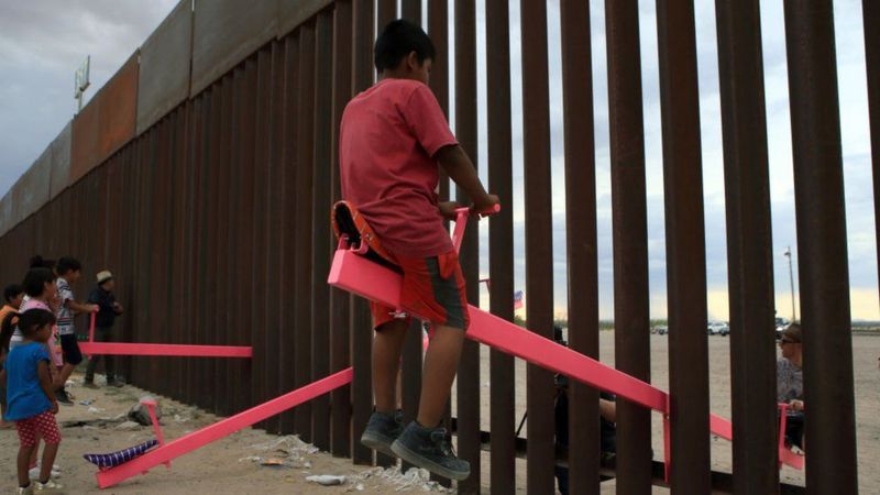عادة ما تُنصب الجدران للفصل بين الناس، لكن هذه الأرجوحات نجحت في الجمع بينهم على جانبي الحدود الأمريكية المكسيكية.