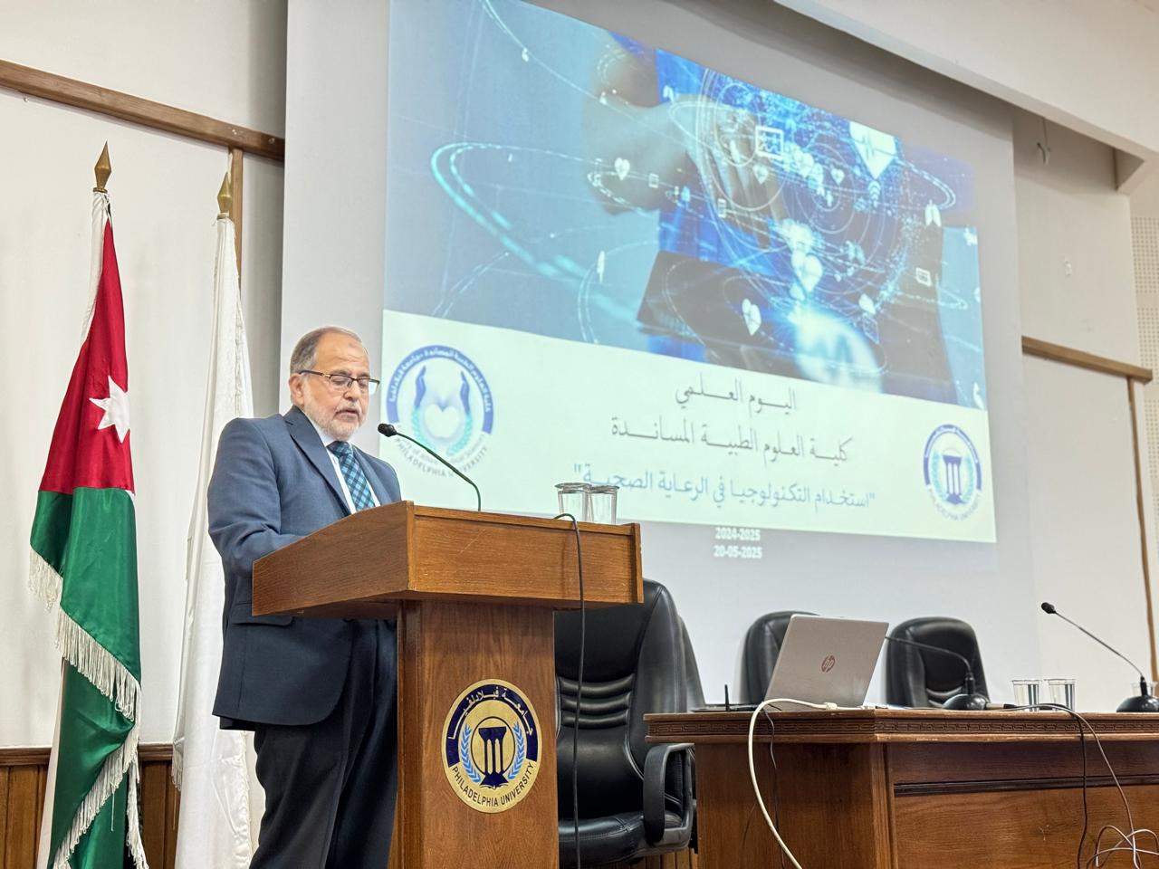 نظّمت كلية العلوم الطبية المساندة في جامعة فيلادلفيا يومها العلمي الثالث بعنوان "استخدام التكنولوجيا في الرعاية الصحية"، وذلك بحضور نائب رئيس جامعة فيلادلفيا للشؤون الأكاديمية الأستاذ الدكتور خالد سرطاوي، وأعضاء من الهيئتين التدريسية والإدارية، إلى جانب طلبة الكلية وعدد من المختصين والمهتمين في مجالات الرعاية الصحية.