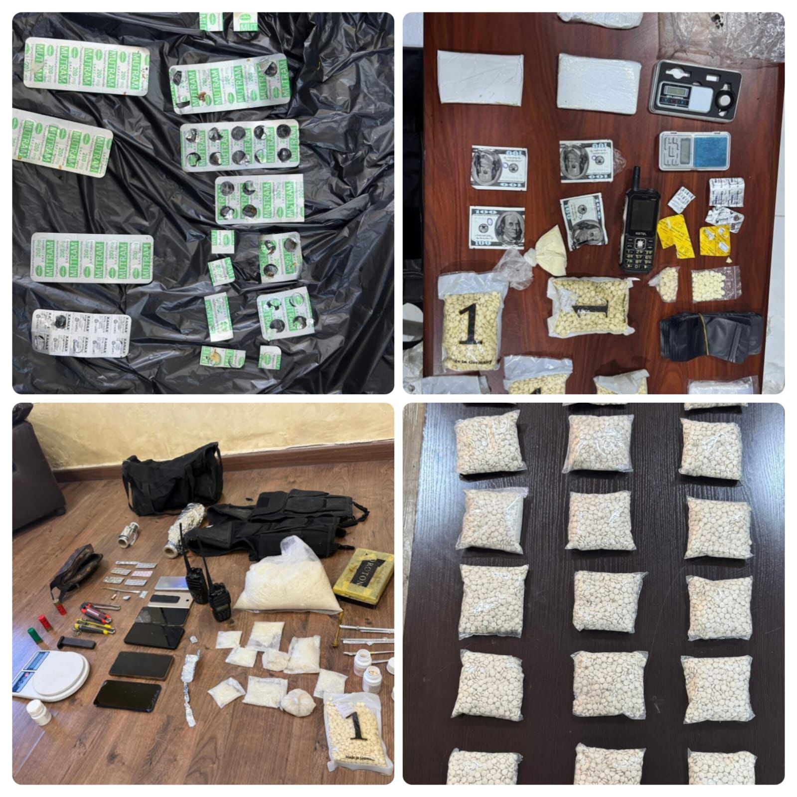 فيما جرت مداهمة منزل تاجر للمخدرات في البادية الوسطى بعد التأكد من حيازته كميات كبيرة من المواد المخدرة وأُلقي القبض عليه وبتفتيش المكان عثر على 16 كغم من مادة الكريستال المخدرة و 1500 حبة مخدرة .