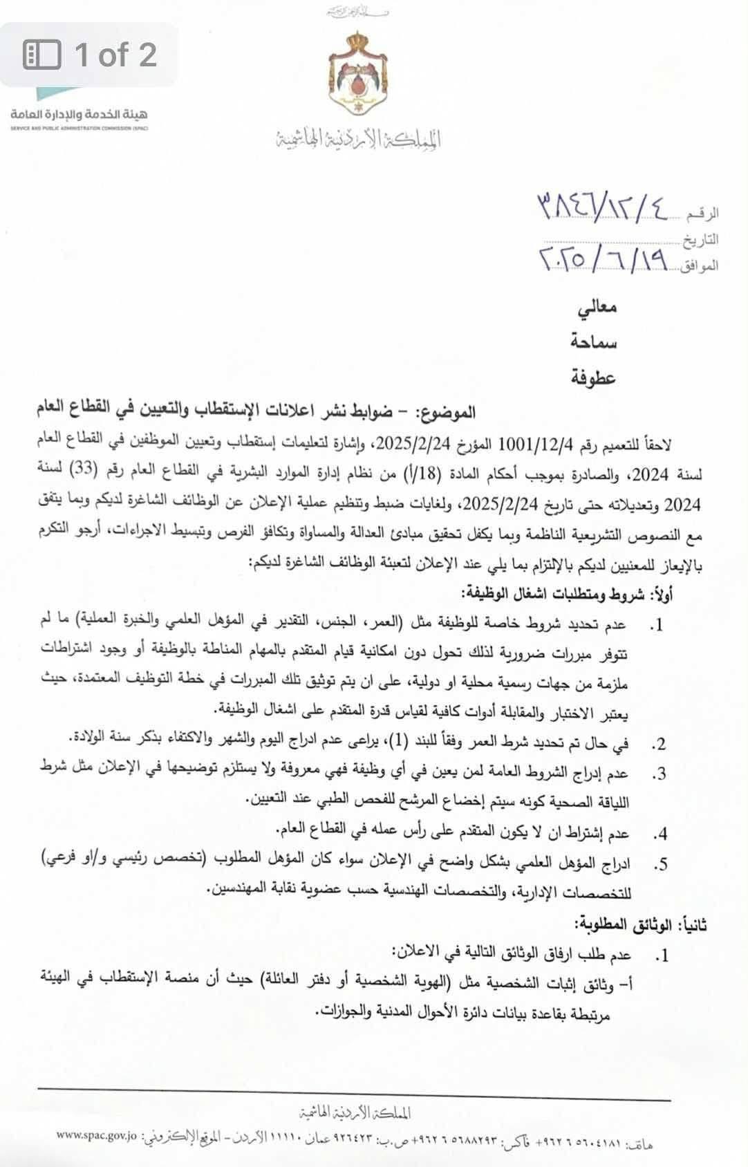 تلتزم الهيئة بالإعلان عن الوظائف الشاغرة والمنشورة على موقع الهيئة الإلكتروني (www.spac.gov.jo).