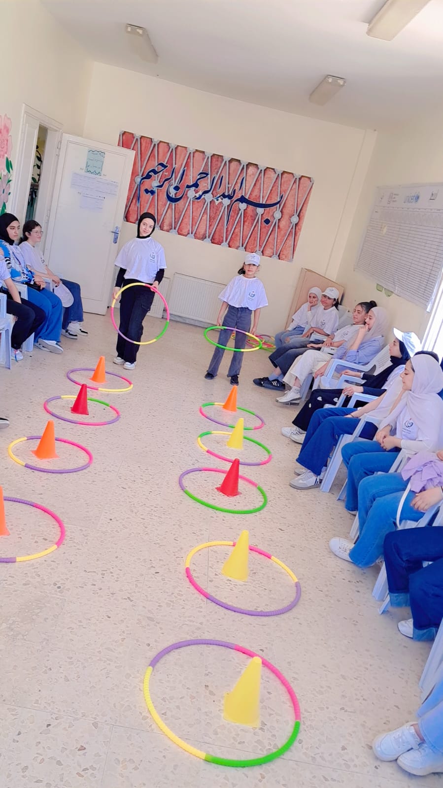 تضمنت فعاليات برنامج المعسكر مجموعة من التمارين الرياضية التفاعلية والألعاب الجماعية، مثل لعبة الكرسي الدوار وشد الحبل والحلقات الدائرية ، بإشراف المدربة إيمان عقار ، التي قدمت للمشاركات إرشادات صحية وتوعوية حول أهمية ممارسة الرياضة في تعزيز اللياقة البدنية والصحة النفسية، وتنمية مهارات التركيز وضبط النفس والعمل الجماعي.