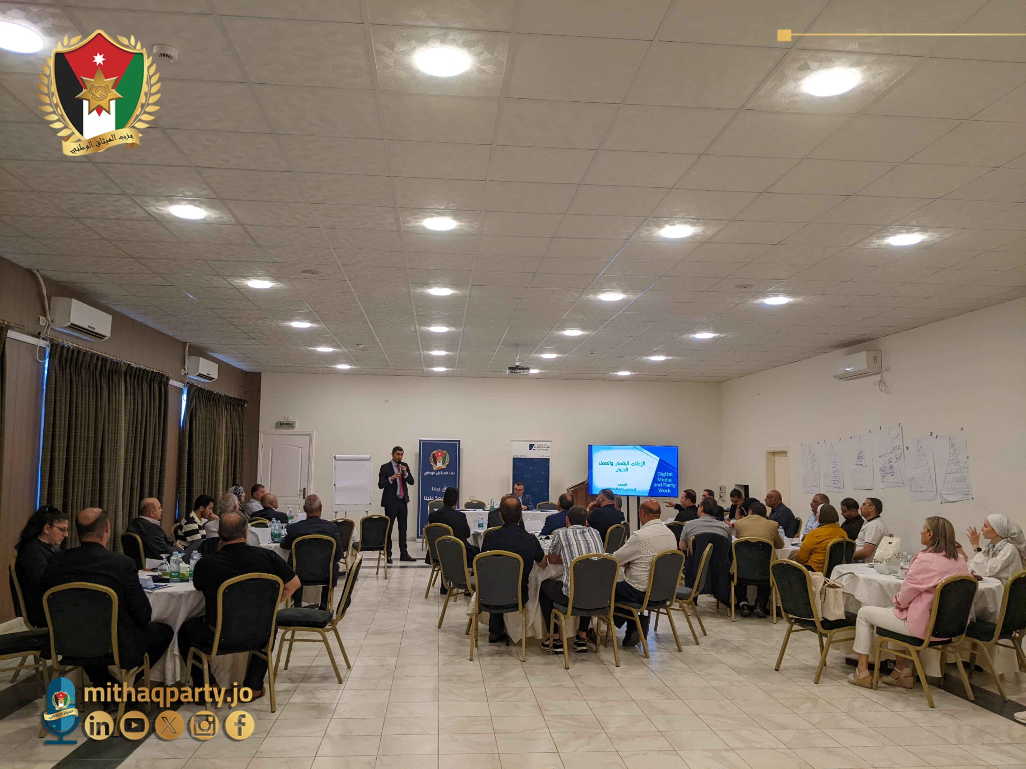 وشارك في تقديم الورشة التي جاءت بالشراكة مع مؤسسة كونراد أديناور الألمانية خبراء ومختصين بالسياسه والإعلام والعمل الحزبي .