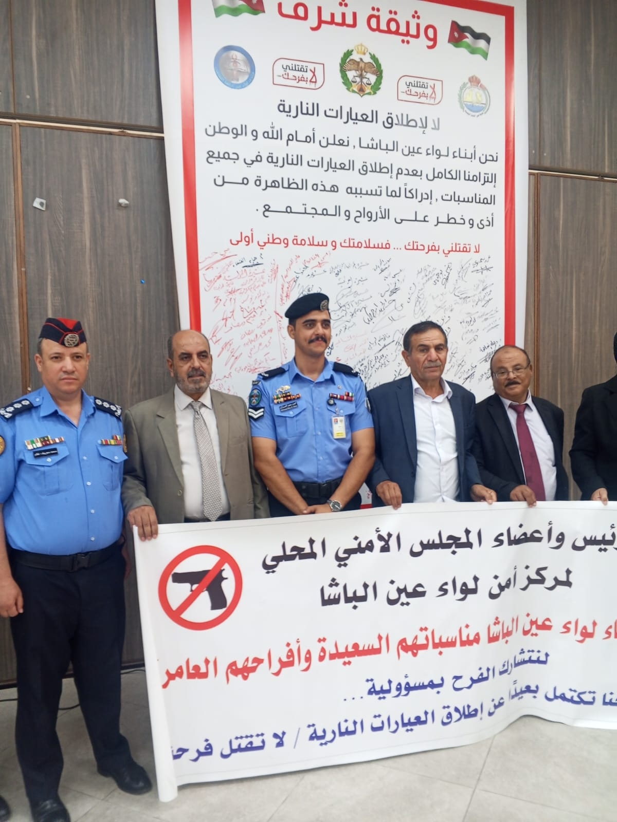 وكما تحدث نائب رئيس مركز امن لواء عين الباشا النقيب محمود غانم ان عدم اطلاق العينات الناريه هو واجب وطني للحفاظ على السلم المجتمعي وارواح المواطنين لان جلاله الملك تحدث ام الانسان الاردني اغلى شيء في هذا الكون ويجب محاربتها به الظاهره السيئه