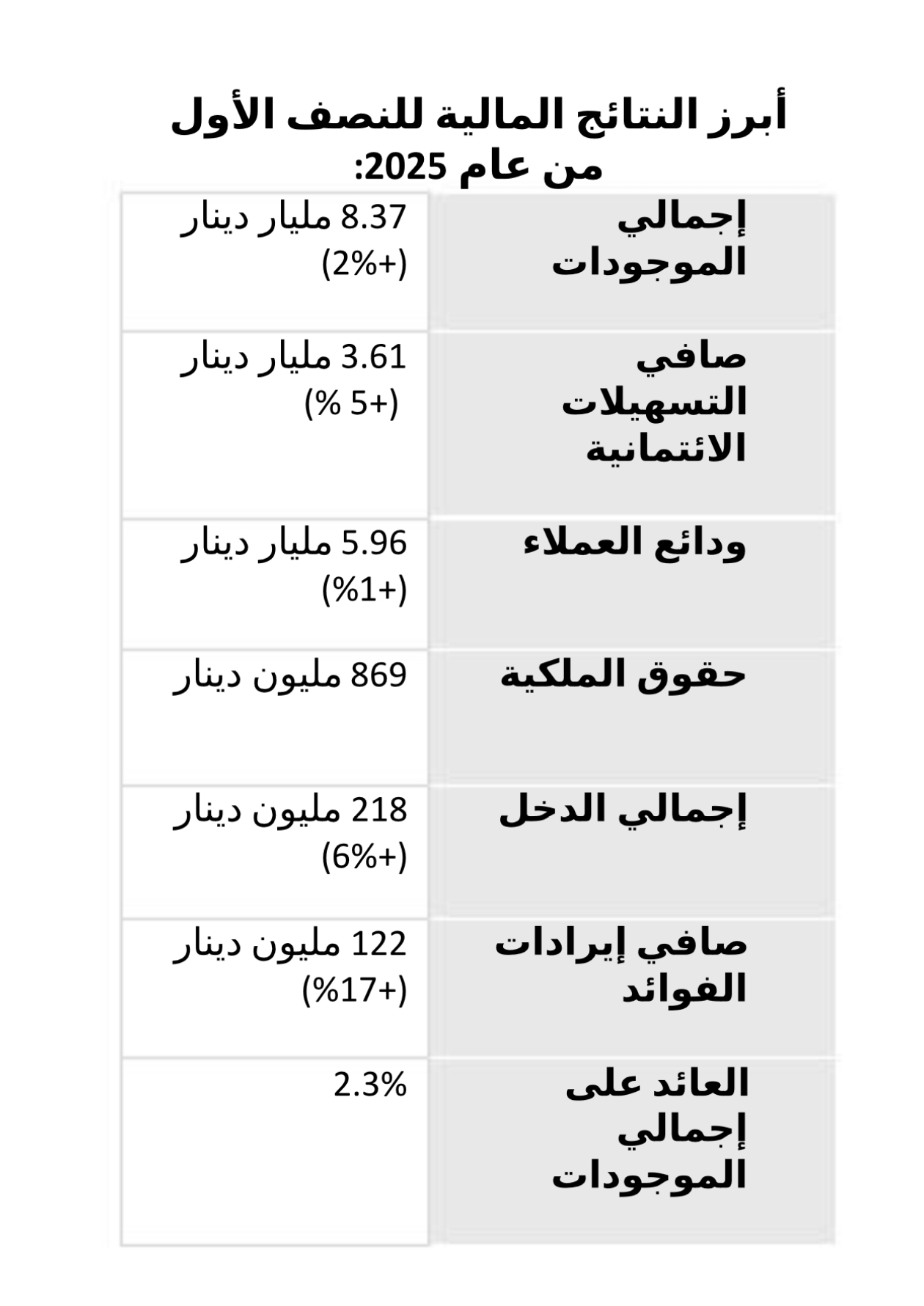أبرز النتائج المالية للنصف الأول من عام 2025: