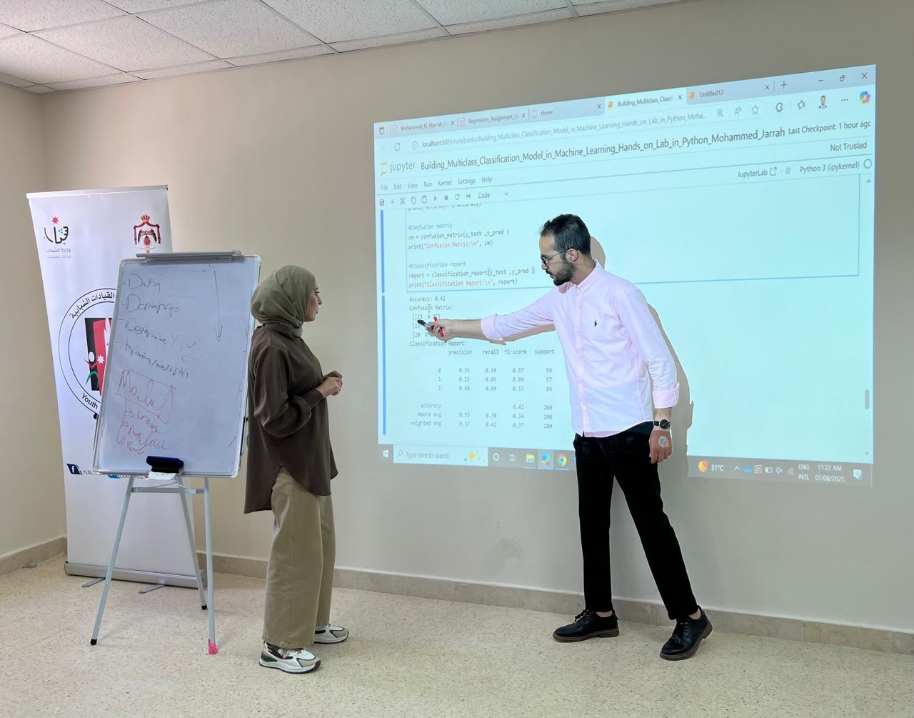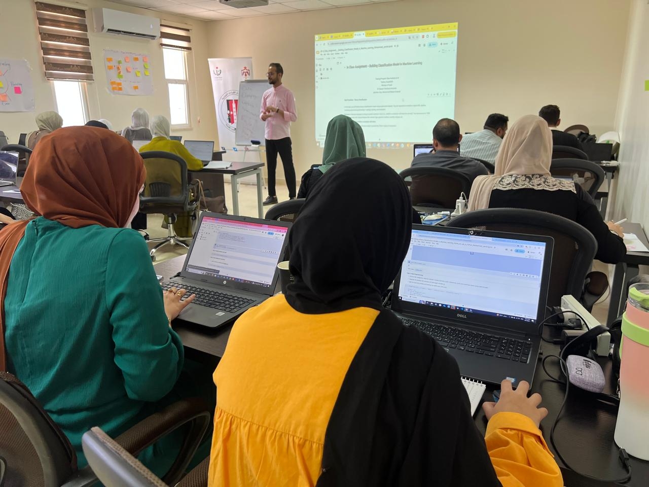 واشتمل التدريب، الذي استمر على مدار خمسة أيام، على تدريبات عملية متقدمة في مجالي الذكاء الاصطناعي وتحليل البيانات، تضمنت التعرف على مبادئ التعلم الآلي، وخوارزميات التعلم الخاضع وغير الخاضع للإشراف، ونماذج التصنيف والتوقع (الثنائي والمتعدد)، مع تطبيقات عملية باستخدام لغة البرمجة بايثون.