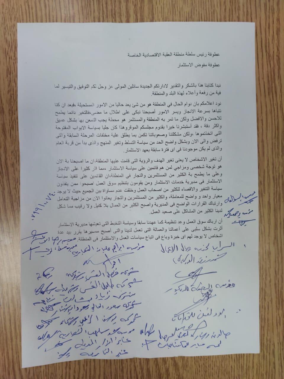 خاص - قدّم عدد من المستثمرين ورجال الأعمال في منطقة العقبة الاقتصادية الخاصة شكوى رسمية إلى رئيس سلطة المنطقة، يعبرون فيها عن قلقهم من "المزاجية" و"غياب التعاون" في التعامل مع قضايا الاستثمار.