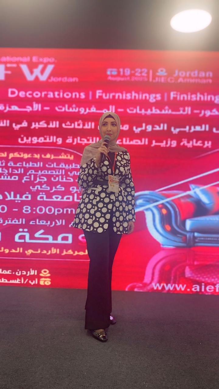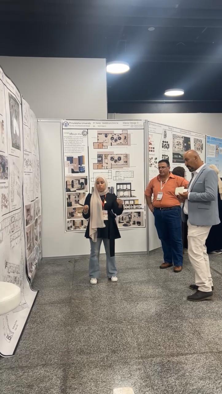 وبرزت مشاركة قسم التصميم الداخلي في جامعة فيلادلفيا من خلال ثلاث محاضرات متخصصة، حيث قدّم الأستاذ محمد عبابنة في اليوم الأول محاضرة بعنوان "الخامات الذكية – ثورة في تصميم المساحات الداخلية وصناعة الأثاث"، فيما تناولت الدكتورة حنان أبو كركي في اليوم الثاني موضوع "تطبيقات الطباعة ثلاثية الأبعاد في التصميم الداخلي والأثاث". أما اليوم الثالث، قدّم فيه الأستاذ صلاح الدين الرويعي محاضرة حول "تطبيقات الذكاء الاصطناعي في التصميم الداخلي وتصميم الأثاث".
