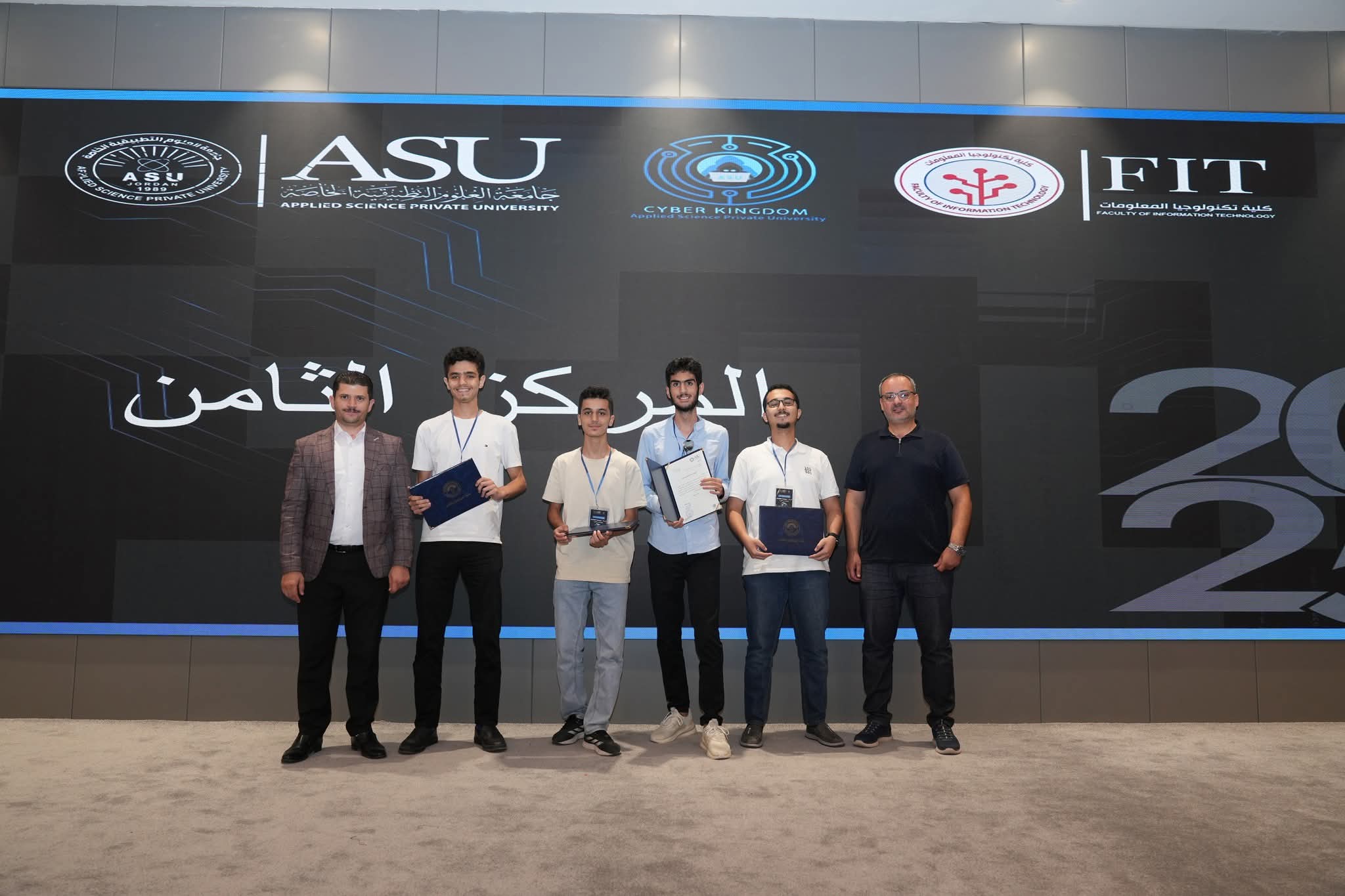 - الفائز بالمركز الثامن هو فريق D-dos team والمكون من الطلبة: عبدالعزيز الزغول، علي ابراهيم ريان، اسلام تيسير مسودة، عمر احمد خير الدين، حيث حصلوا على منحة دراسية 30% على رسوم الساعة المعتمدة لدراسة أي تخصص في كلية تكنولوجيا المعلومات.