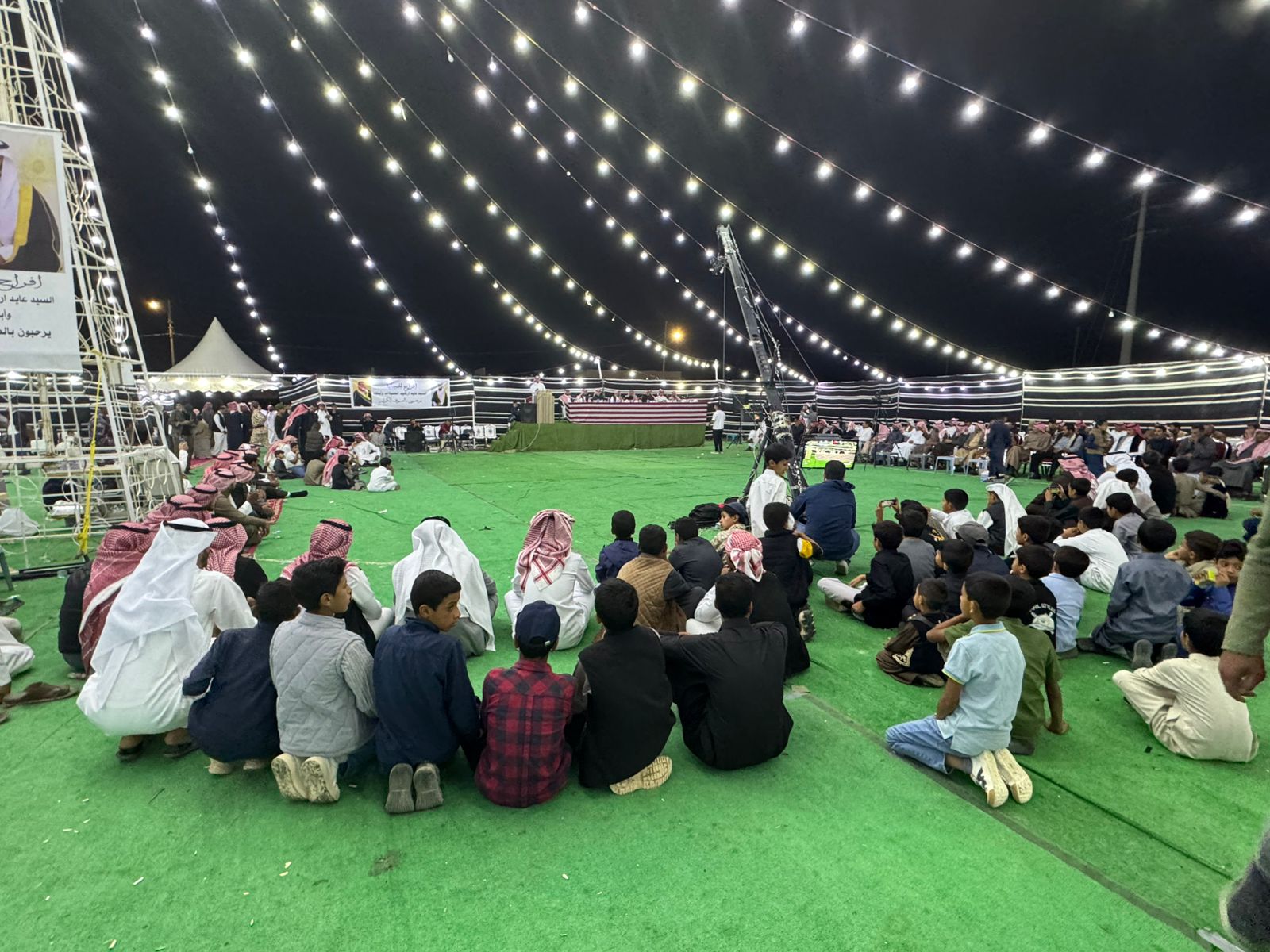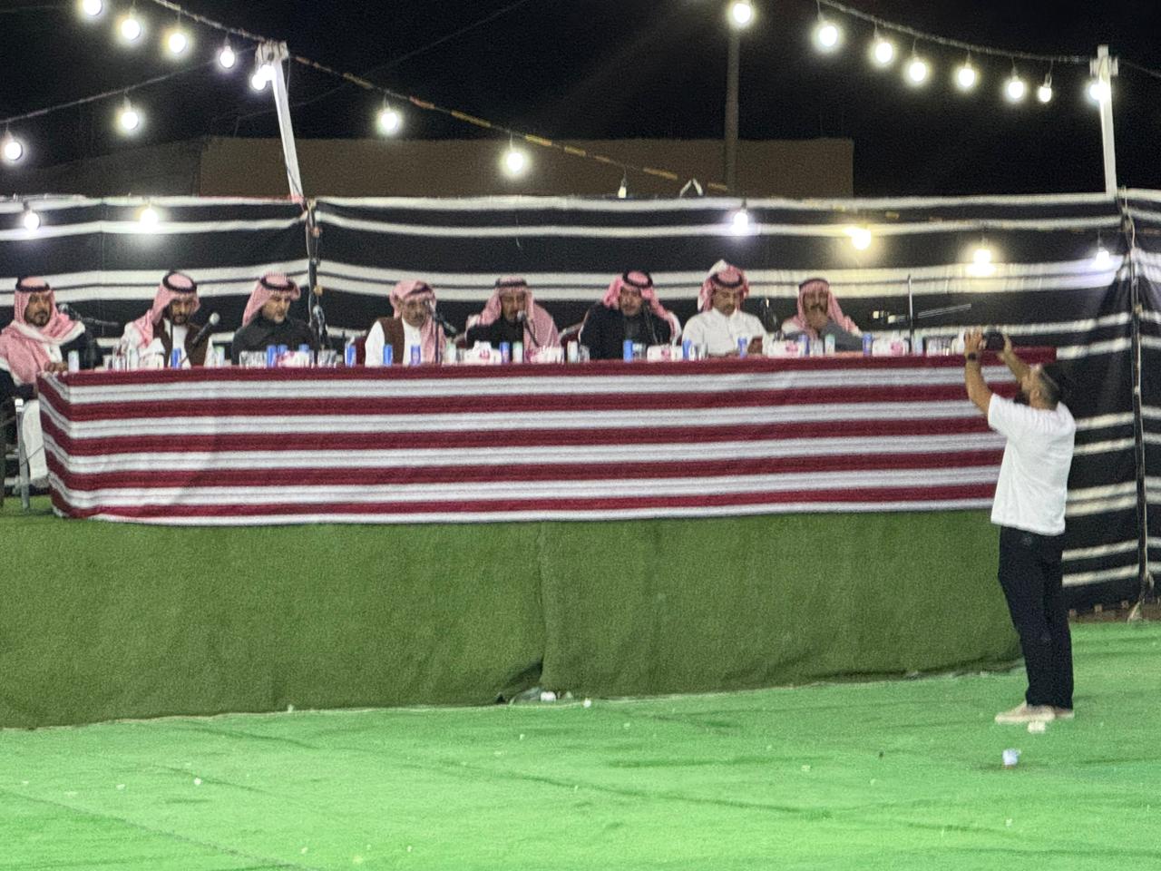 الشعراء عندما حضروا بيت الفرح ، فقد اعتلوا المنصة الشعرية التي حضرها والد العريس و بحضور مشرف ومهيب من مدعوين مهتمين ، وسط تصفيق وترحيب وتهاني للعريس ووالده واخوانه .