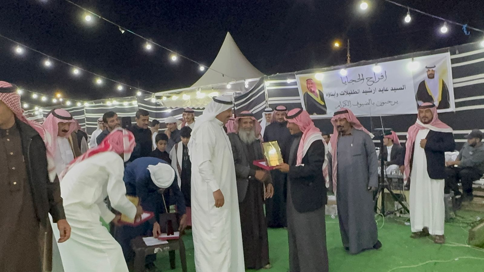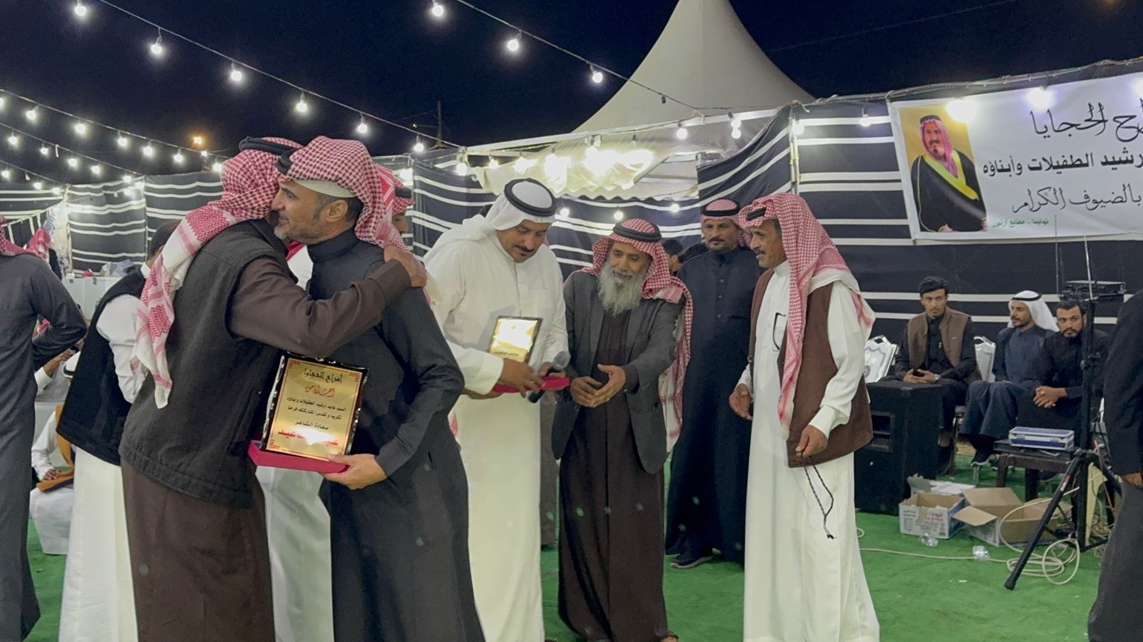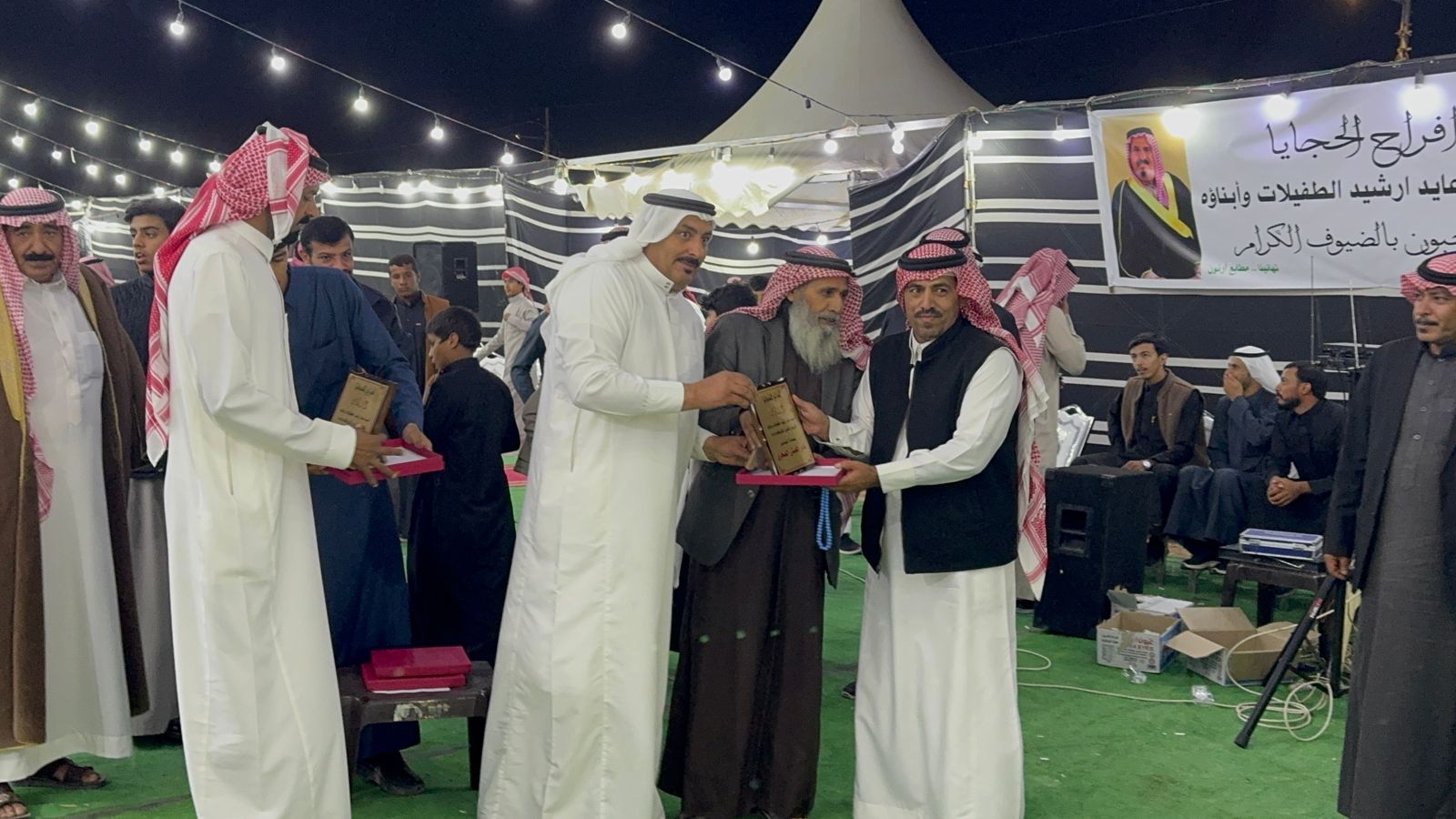 وفي نهاية حفل العرس الذي تميز بحسن التنظيم العرس فقد قام الاخ الأكبر للعريس والشاعر علي الطفيلات الذي بادر بالفكرة بجمع شعراء الوطن بإحياء الموروث الثقافي و نيابة عن والدهم بتكريم الشعراء بدروع تذكار للشعراء كل باسمه .