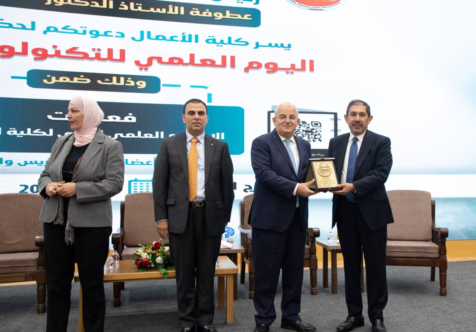وتضمن اليوم العلمي جلسة حول مستقبل التكنولوجيا المالية في الأردن والاتجاهات الحديثة والتحديات والفرص في القطاع المالي، بمشاركة الدكتور غسان أبوشهاب من البنك المركزي الأردني، والدكتور رياض الهنداوي مدير معهد الدراسات المصرفية وأكاديمية الفنتك الأردنية، والدكتور رعد التل من الجامعة الأردنية، والسيد فادي مشهراوي من جمعية البنوك الأردنية، وأدار الجلسة الدكتور إبراهيم منصور.