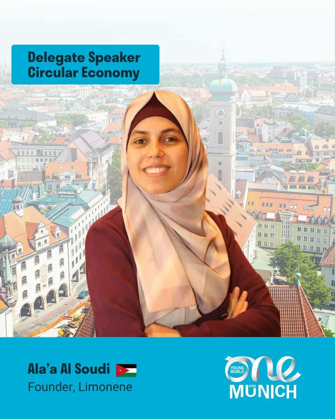 وقالت السعودي: يشرفني تمثيل وطني الأردن حيث تشرفت باختياري لرفع علم الأردن أمام قادة وشخصيات عالمية بارزة، وتقديم تجربة الأردن الرائدة في دعم الريادين والرياديات، وفخورة ايضًا بعرض قصة نجاح شركة ليمونين في تطوير حلول بيئية تعيد الحياة للمياه وتقلل من النفايات، وتلهم الشباب في منطقتنا لتبني نماذج اقتصادية أكثر استدامة.