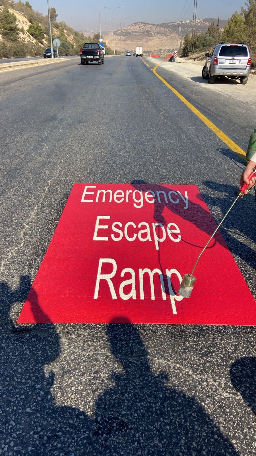 كما تم تركيب الحواجز الواقية والعواكس الضوئية لعزل المهارب عن الطريق الرئيسي، وتنفيذ إجراءات السلامة المرورية لضمان الاستخدام الآمن لها في الحالات الطارئة.