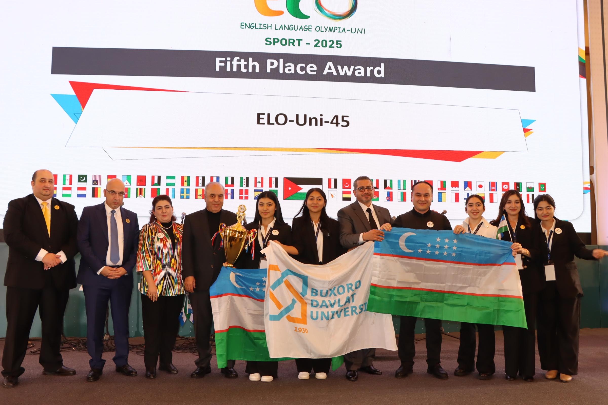 5. أحرز المركز الخامس على المستوى العالمي لأولمبياد اللغة الانجليزية العالمي للجامعات 2025 جامعة بخارى/ أوزباكستان فريق (Voices of Victory)