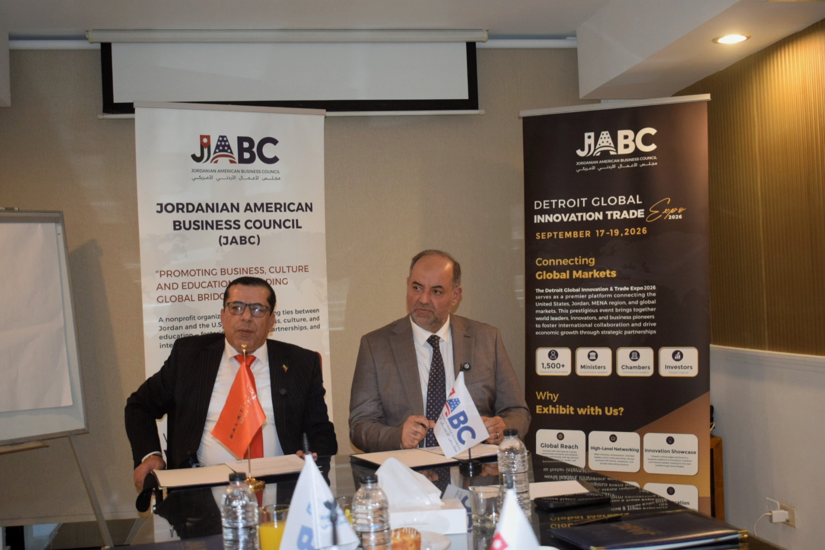 تقديراً للمكانة الإعلامية الرفيعة والمهنية العالية التي يتمتع بها موقع "بلكي نيوز" على المستويين المحلي والخارجي، أبرم مجلس الأعمال الأردني الأمريكي (JABC) مذكرة تفاهم استراتيجية اليوم الخميس في فندق لاند مارك بالعاصمة الأردنية عمان  لإرساء شراكة إعلامية تهدف إلى تعزيز بيئة الاستثمار والتجارة بين المملكة الأردنية الهاشمية والولايات المتحدة الأمريكية. وقد وقع الاتفاقية في العاصمة الأردنية عمان رئيس مجلس إدارة المجلس الدكتور طارق نجيب، وعن وكالة بلكي نيوز المدير العام المهندس فادي العمرو، تجسيداً لرؤية الطرفين في بناء جسور من التعاون تدعم التنمية الاقتصادية والثقافية.