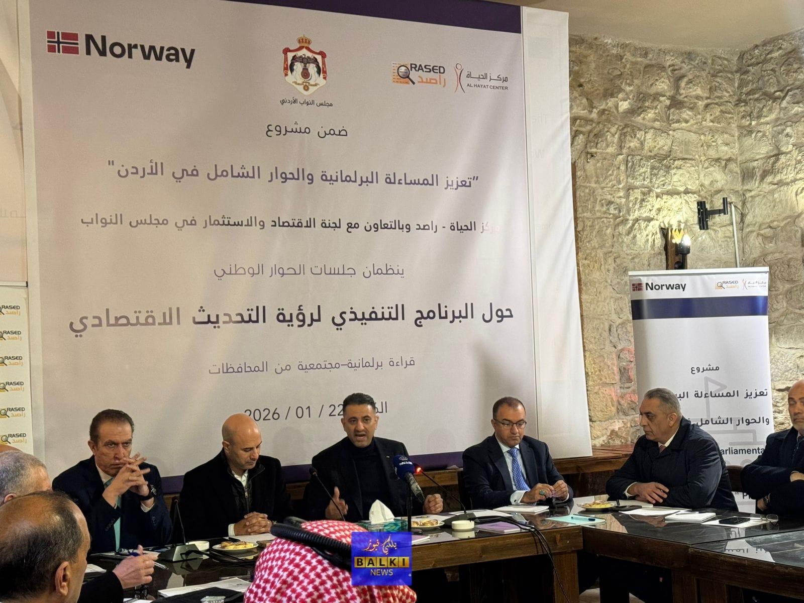 من جانبه، أكد رئيس لجنة الاقتصاد والاستثمار النيابية النائب خالد أبو حسان أن هذه الجولات تقع في قلب الدور الرقابي والتشريعي للجنة، مشدداً على الحرص بأن يكون البرنامج التنفيذي نابعاً من الواقع المحلي لضمان عدالة توزيع المشاريع وتعظيم أثرها، فيما أشار مدير عام مركز الحياة – راصد الدكتور عامر بني عامر إلى أن هذا النقاش يمثل شراكة حقيقية بين السلطة التشريعية والمجتمع المدني، مبيناً أن الهدف هو تحويل رؤية التحديث إلى برنامج حي يستند لأولويات المحافظات ويدعم مسارات التحديث السياسي والإداري لتحقيق تنمية مستدامة وشاملة.