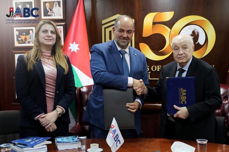 مجلس الأعمال الأردني الأمريكي (JABC) يوقّع اتفاقية تعاون مع مجموعة طلال أبو غزالة العالمية، ومثّل المجلس في التوقيع رئيس مجلس الإدارة الدكتور طارق نجيب، فيما مثّل المجموعة المؤسس والرئيس الدكتور طلال أبو غزالة. وتهدف الاتفاقية إلى تعزيز التعاون في مجالات التحول الرقمي، التدريب، والخدمات المهنية، من خلال تطوير برامج مشتركة تدعم كفاءة بيئة الأعمال وتواكب التطور التقني، إضافة إلى دعم مبادرات المجلس في التجارة والاستثمار وتبادل الخبرات وتنفيذ مشاريع مشتركة مع مؤسسات محلية ودولية. كما تسعى الشراكة إلى توسيع شبكة العلاقات مع المؤسسات الوطنية الرائدة، وتعزيز الابتكار وريادة الأعمال، وفتح آفاق جديدة للتعاون المستدام على المستويين المحلي والدولي.